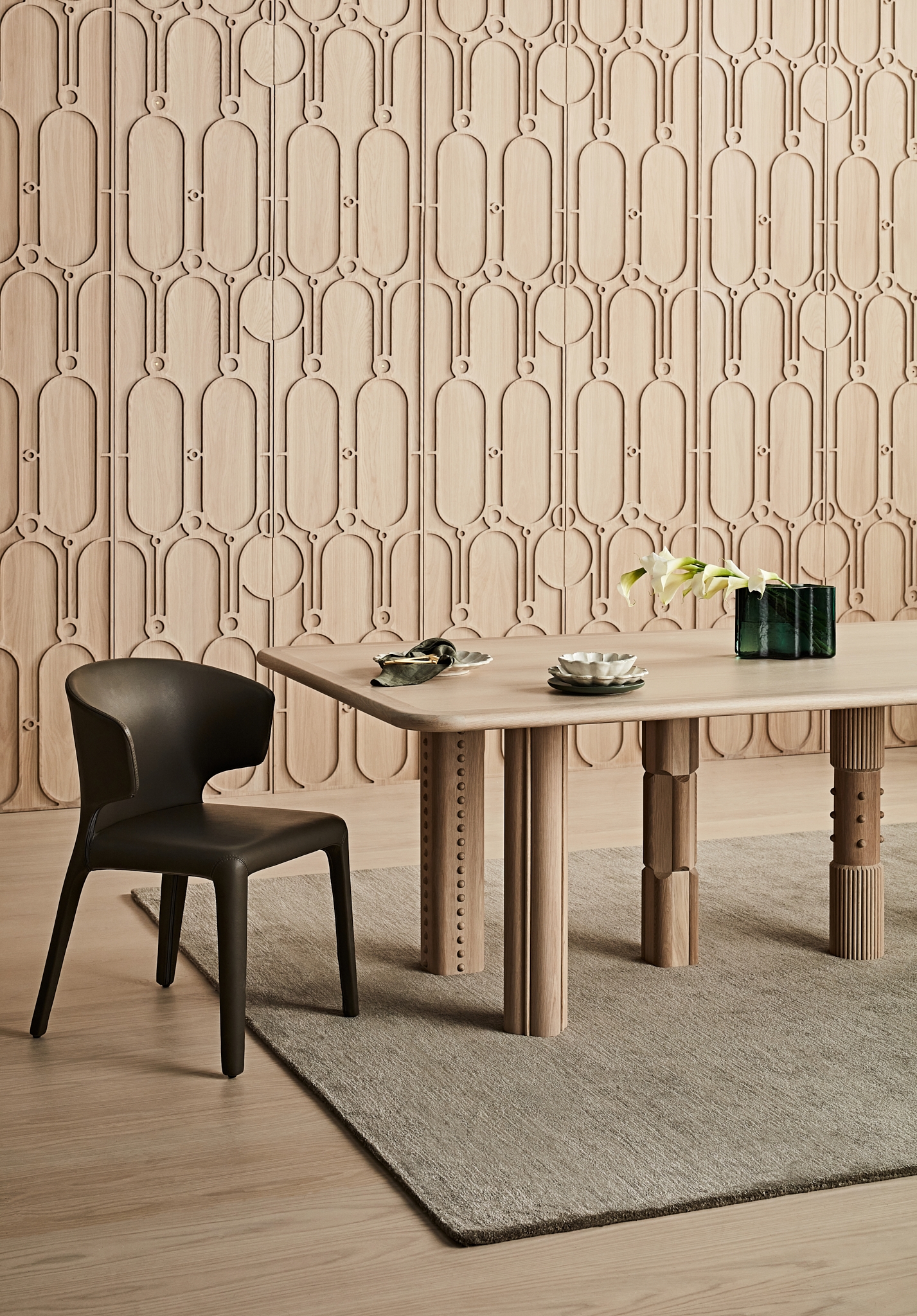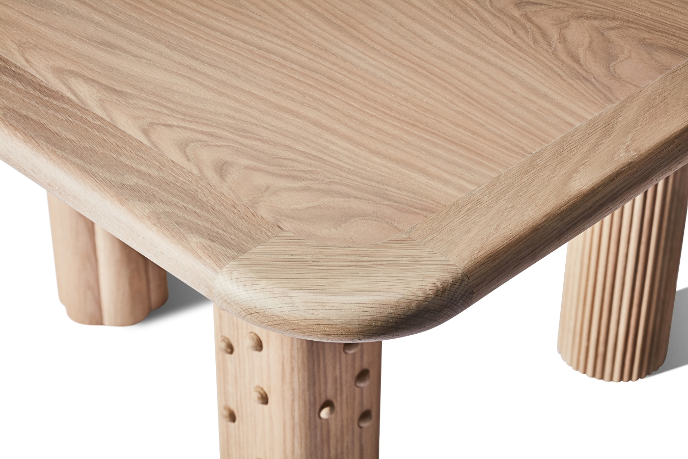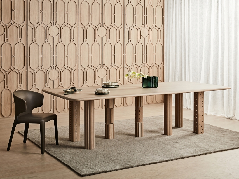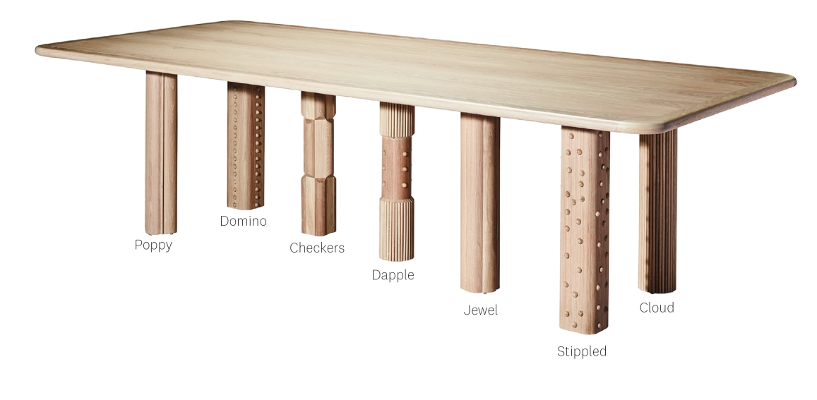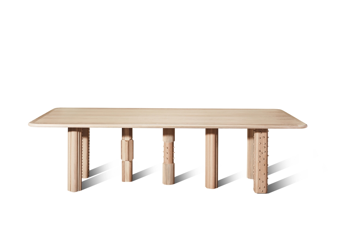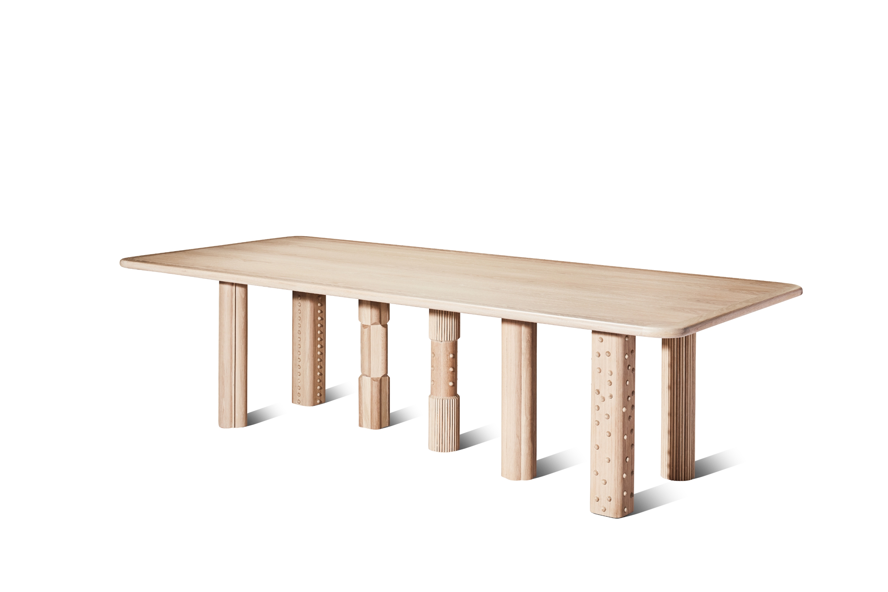 Adorn Maxima Dining Table is handcrafted in American oak with each leg adorned with unique timber patterns and details.
