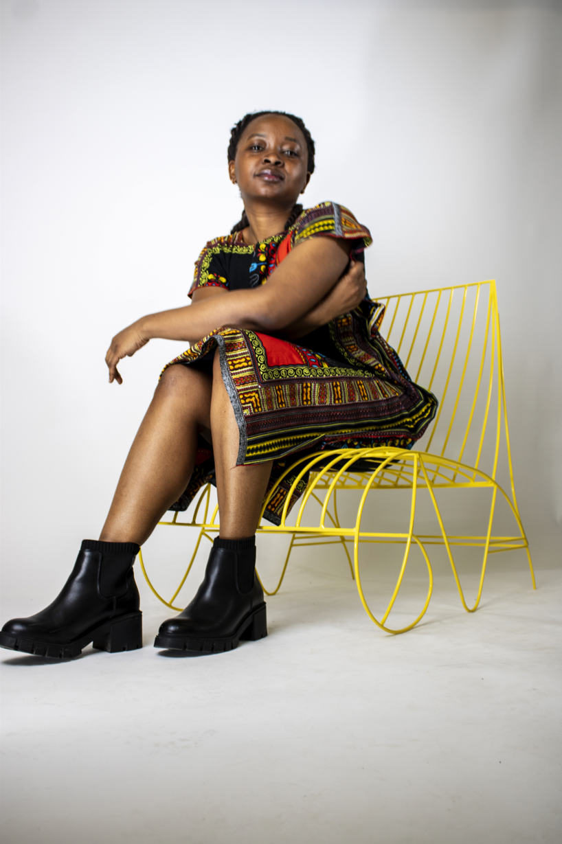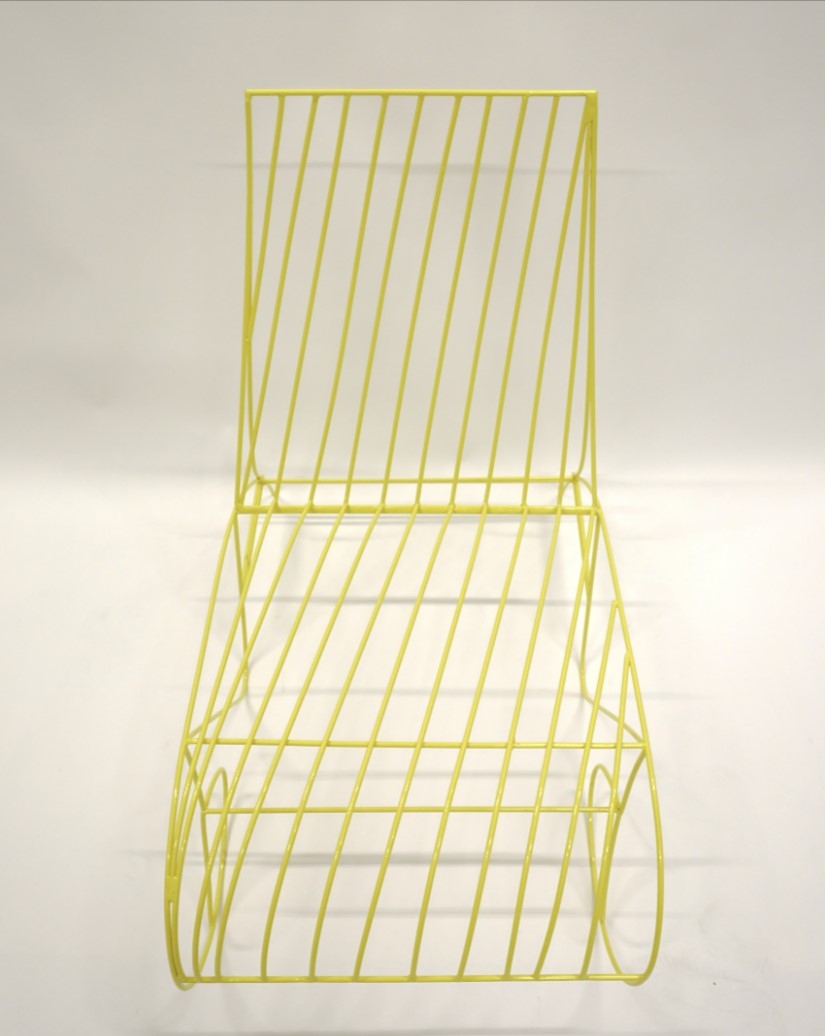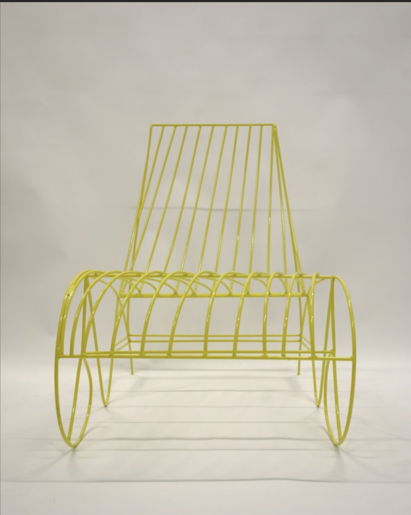 As a designer with origin from Ghana, I found inspiration for this contemporary metal lounge chair from gazing at the ocean and seascapes of my West African homeland. The bright yellow finish evokes the golden sun along the Ghanaian coast, while the fluid, angular curves reflect the movement of waves. Expertly crafted from steel rods, the lounge chair marries industrial durability and a sculptural aesthetic.