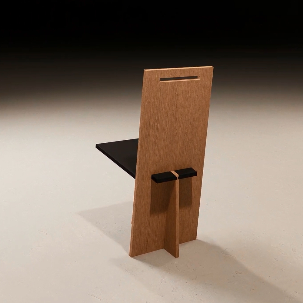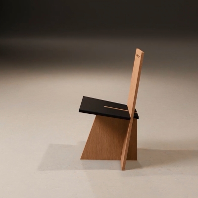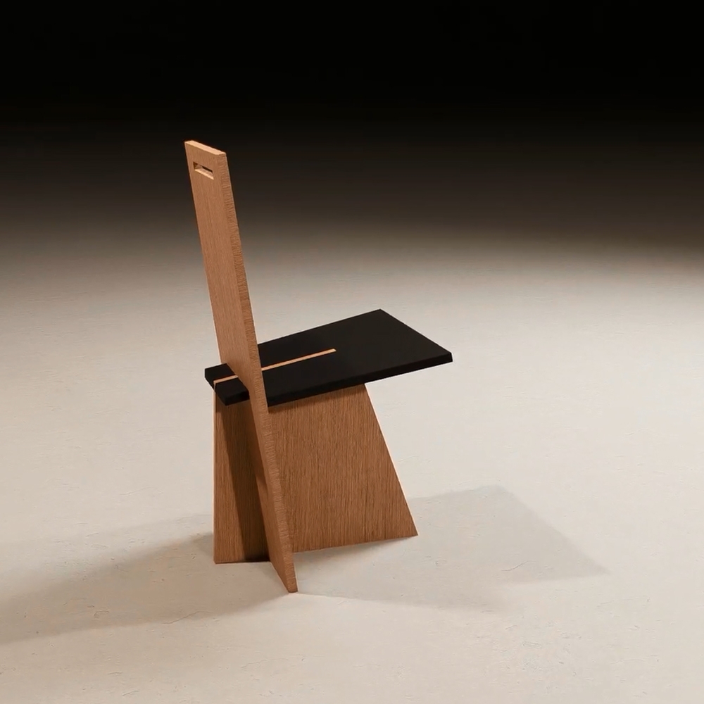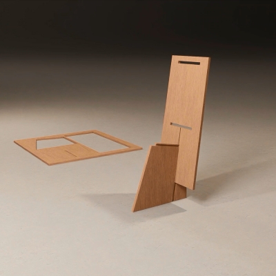 Bio Sahm is constructed of three machine-cut pieces of wood. The idea was to design a chair which would be both rational sustainable and expressive. Construction and design or engineering and aesthetic, are equated with a minimum of visible creative effort, so that it is defined by an impression of simplicity even though the system behind it is highly complex. The various parts are connected in such a way that the overall construction appears self-contained. However, to ensure that no clearly delineated space is created, the elements are locked into each other with simple joints.