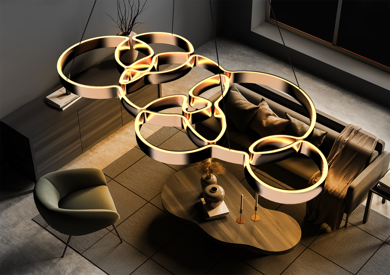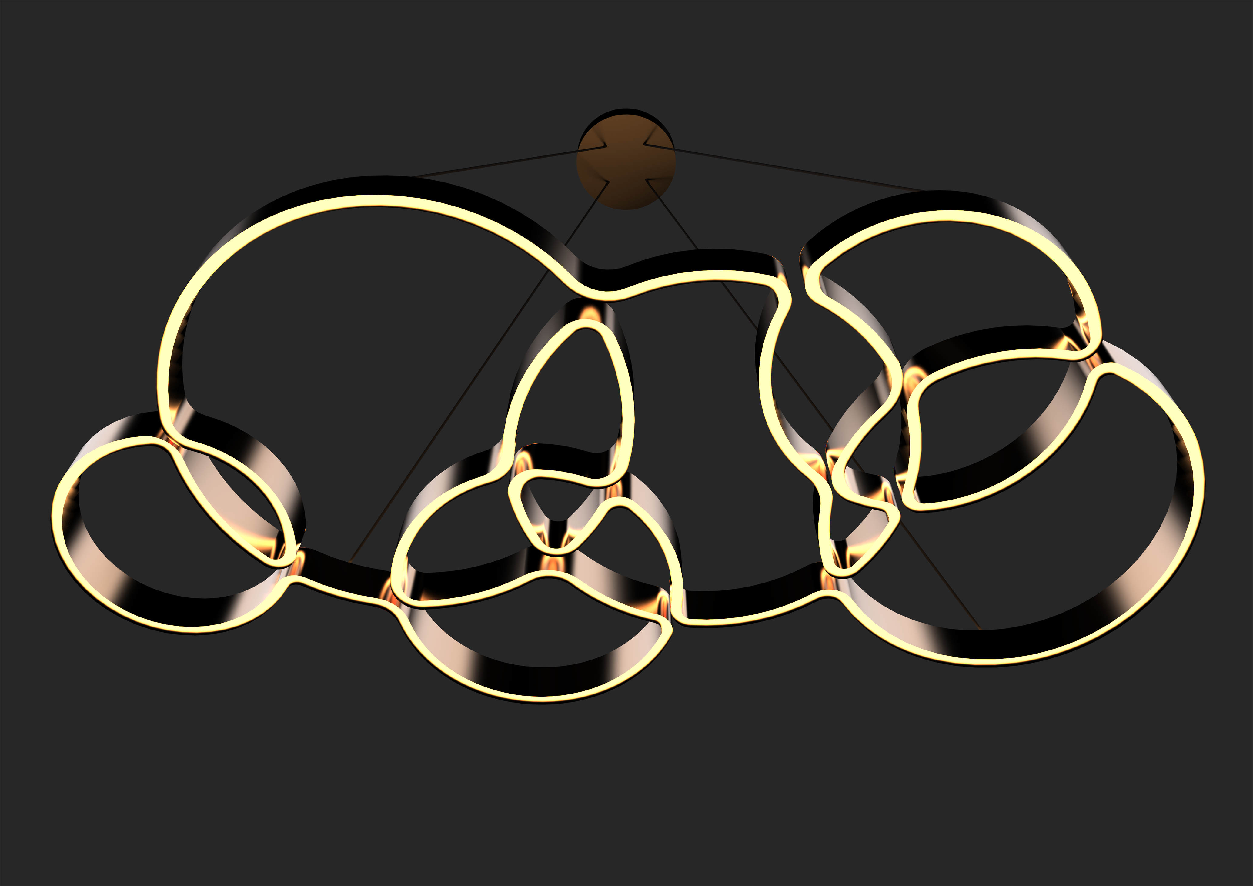 This chandelier is designed with the central theme that "beauty isn't confined to a single moment, it expands, complements, and ultimately becomes evident." At first glance, viewers perceive the loops of this chandelier, and then they realize the connection of curves that these loops form. This evolving visual rhythm thus soothes observers and reminds them that the serenity of life is an interconnected continuum. In general, the paths taken, the experiences accumulated through setbacks and hardships throughout life, all require the passage of time to reach completion. Essentially, this chandelier is more than a mere fixture. It showcases a glimpse of the intertwined beauty found in life's moments. Its design is much like interconnected stories that shape our world. As light dances through its graceful arcs, let's remember the noiseless dance of our own existence.