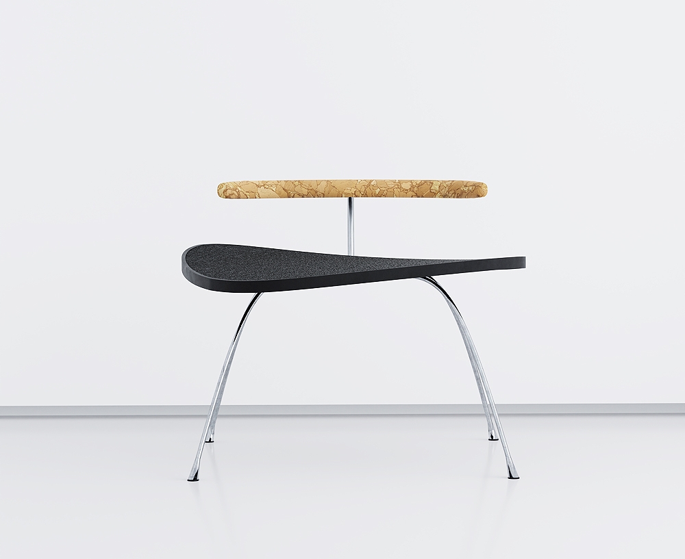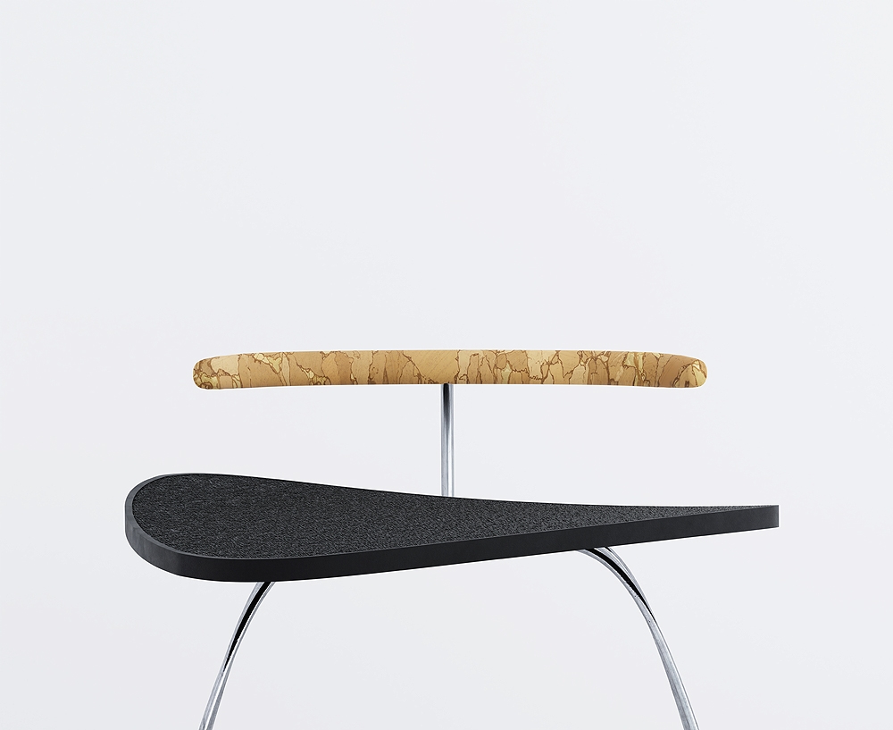 Idiosyncratic Chair is a statement of mindful and syncretic design. The combination of 3D printing, cork and stainless steel is an example of the commitment to an AI-supported design process, that combines cutting-edge production technology with renewable and recyclable materials.
