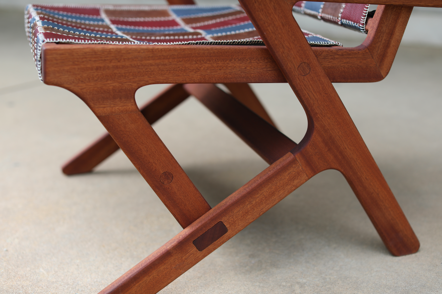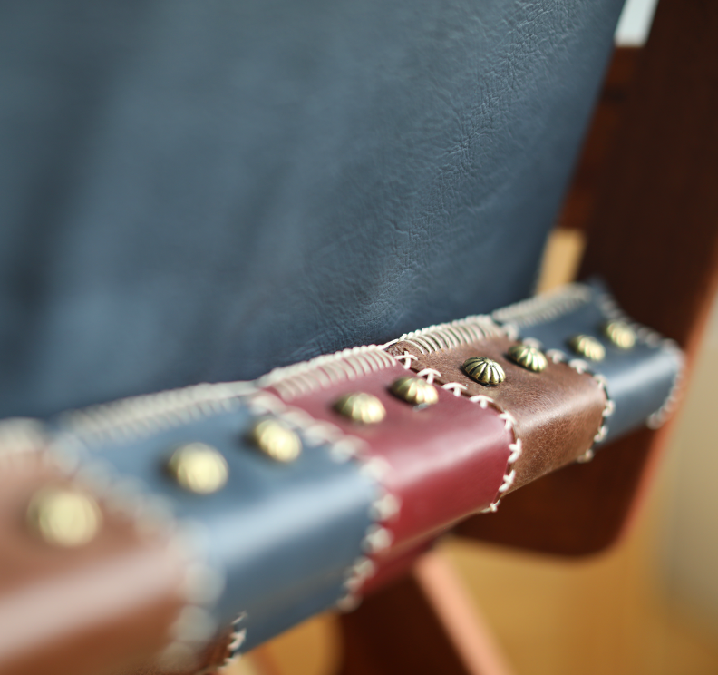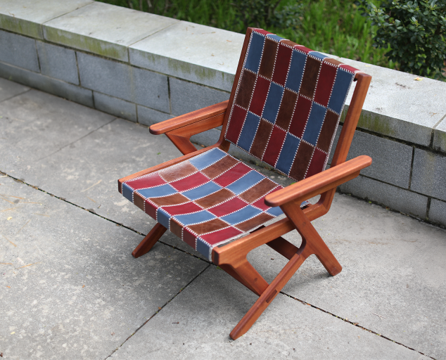The Patina Chair celebrates the beauty of imperfection and the art of repurposing. The seat is made of hand-stitched patchwork leather that was reclaimed from discarded scraps, transforming waste into functional art. The name of the chair references wood and leather patina, a process which turns surfaces beautiful and unique with age. Oil from the skin, natural wear, and exposure to elements guarantee that no two pieces are alike. Over the years you’ll find yourself interacting with this chair in many ways– resting your arm on the armrest, scrubbing a coffee stain out of the seat, accidentally scuffing the leg when moving it into your new home... every mar, stain, wear, and use will transform The Patina Chair into something irreplaceable and uniquely yours.