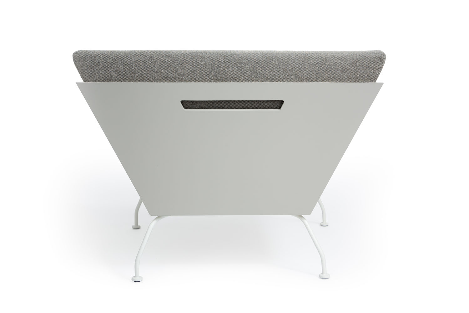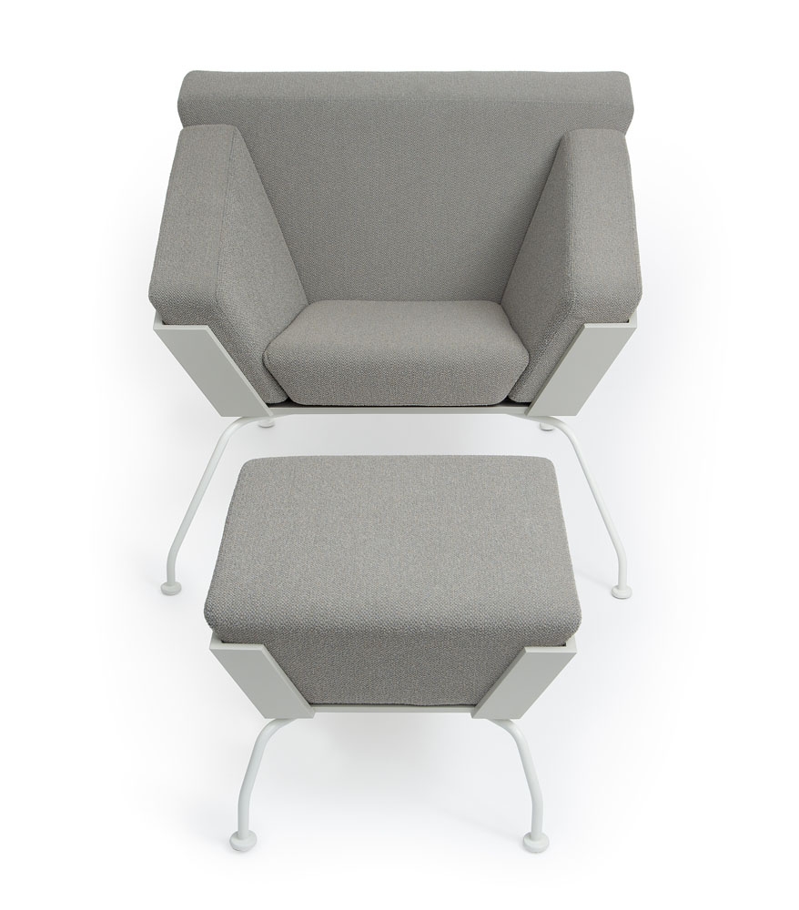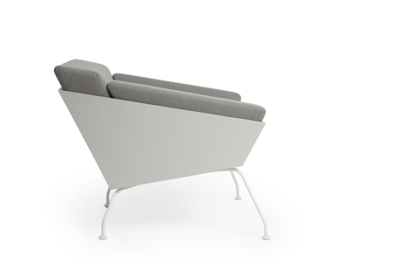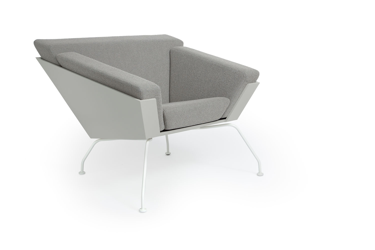 A dynamic lounge chair whose architectural profile expresses motion and clarity. The chair is intended for residential and hospitality interiors, but its visual presence is appropriate for institutional settings.