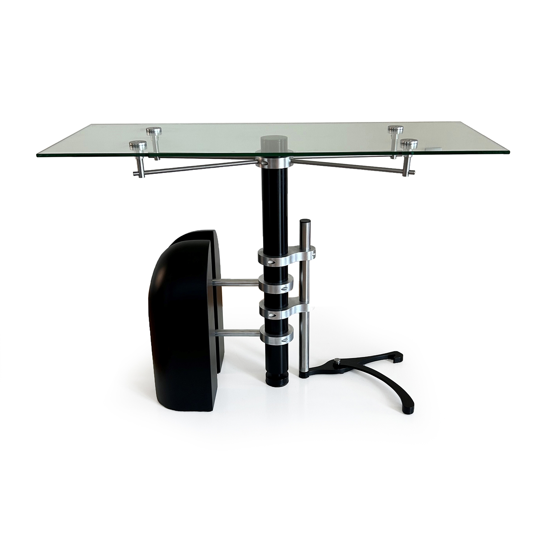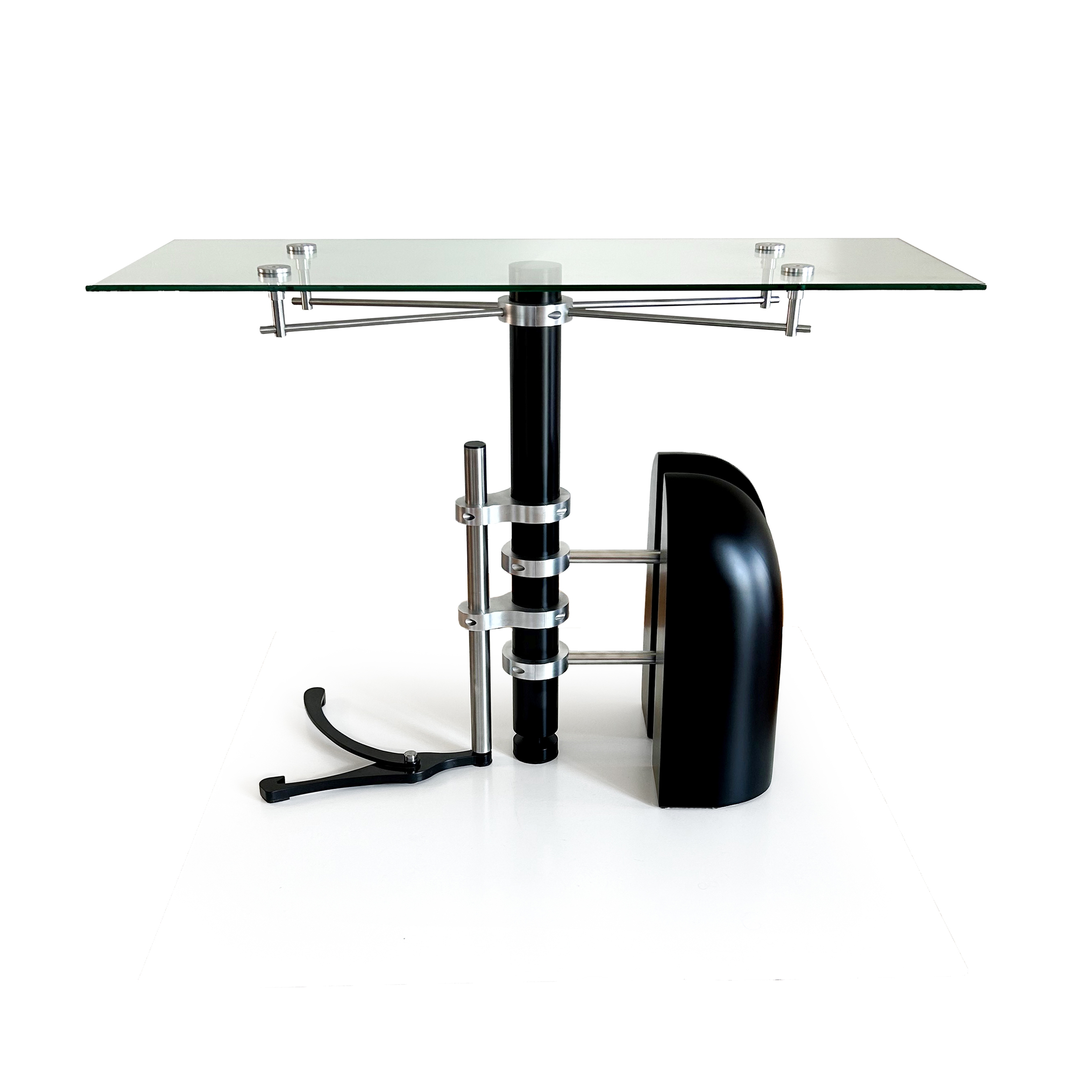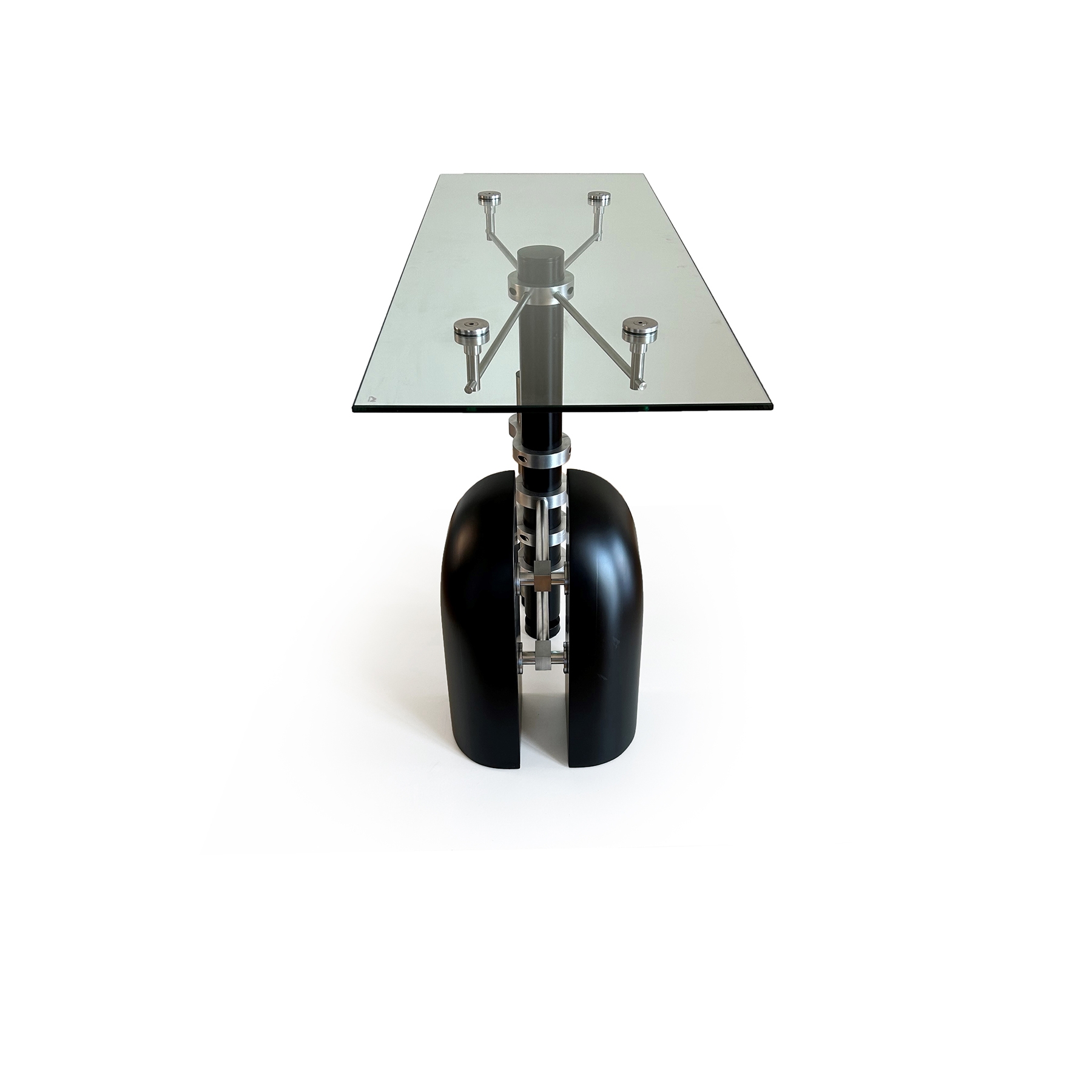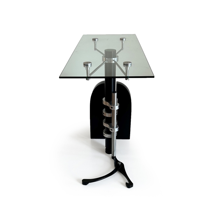 "Estabilitas Concordia" is an entrance table that transcends conventional design, embodying a bespoke fusion of collectible art and functional elegance. Design by Fabrizio Constanza and meticulously crafted in Guatemala by master artisans in industrial mechanics and carpentry, this masterpiece comprises 44 intricately designed pieces and over 50 precision-assembled bolts."Estabilitas Concordia" exemplifies an intentional, where each component is indispensable for the seamless operation of the entire composition. The unexpected yet harmonious outcome renders it not only balanced but uniquely captivating, evoking and transmitting the profound emotions elicited by exemplary design. It stands as a testament to the marriage of artistry and craftsmanship, setting it apart as an unparalleled embodiment of aesthetic ingenuity and quality.