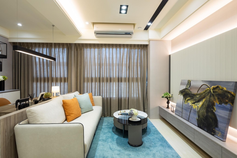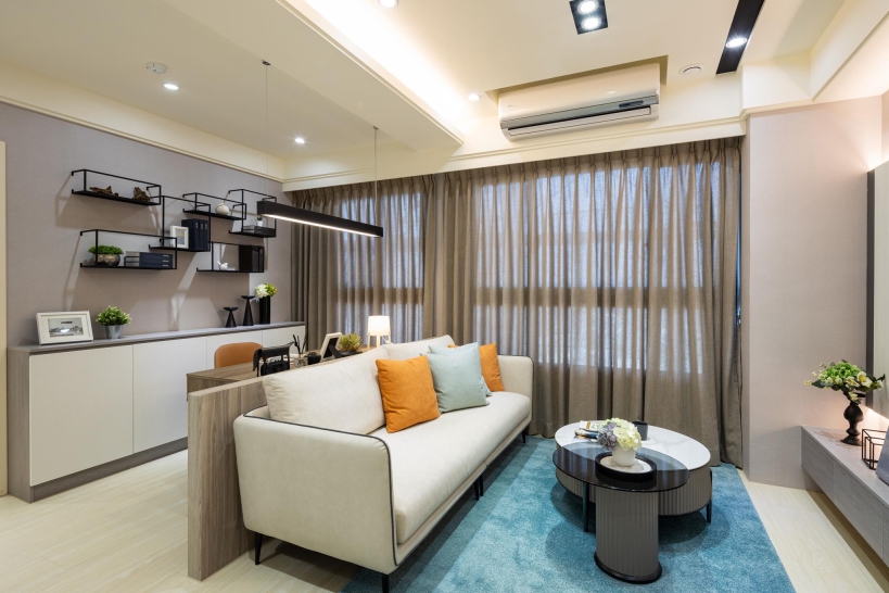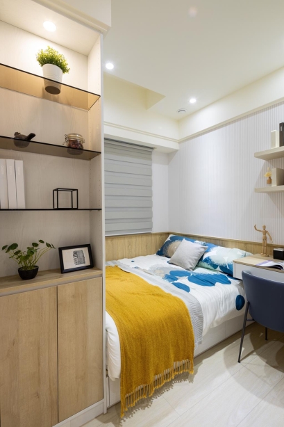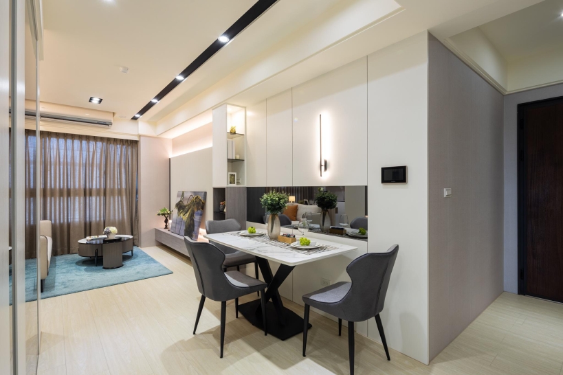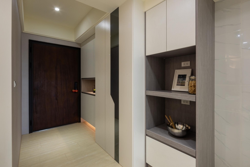 The original three-bedroom layout has been transformed into a high-efficiency 2+1 configuration to accommodate a small family. Inspired by simplicity and optimal storage solutions, the design seamlessly integrates sustainable materials, understated colors, and sleek lines for a cohesive and visually striking space. Step into the entrance foyer and unveil a meticulously curated journey.
