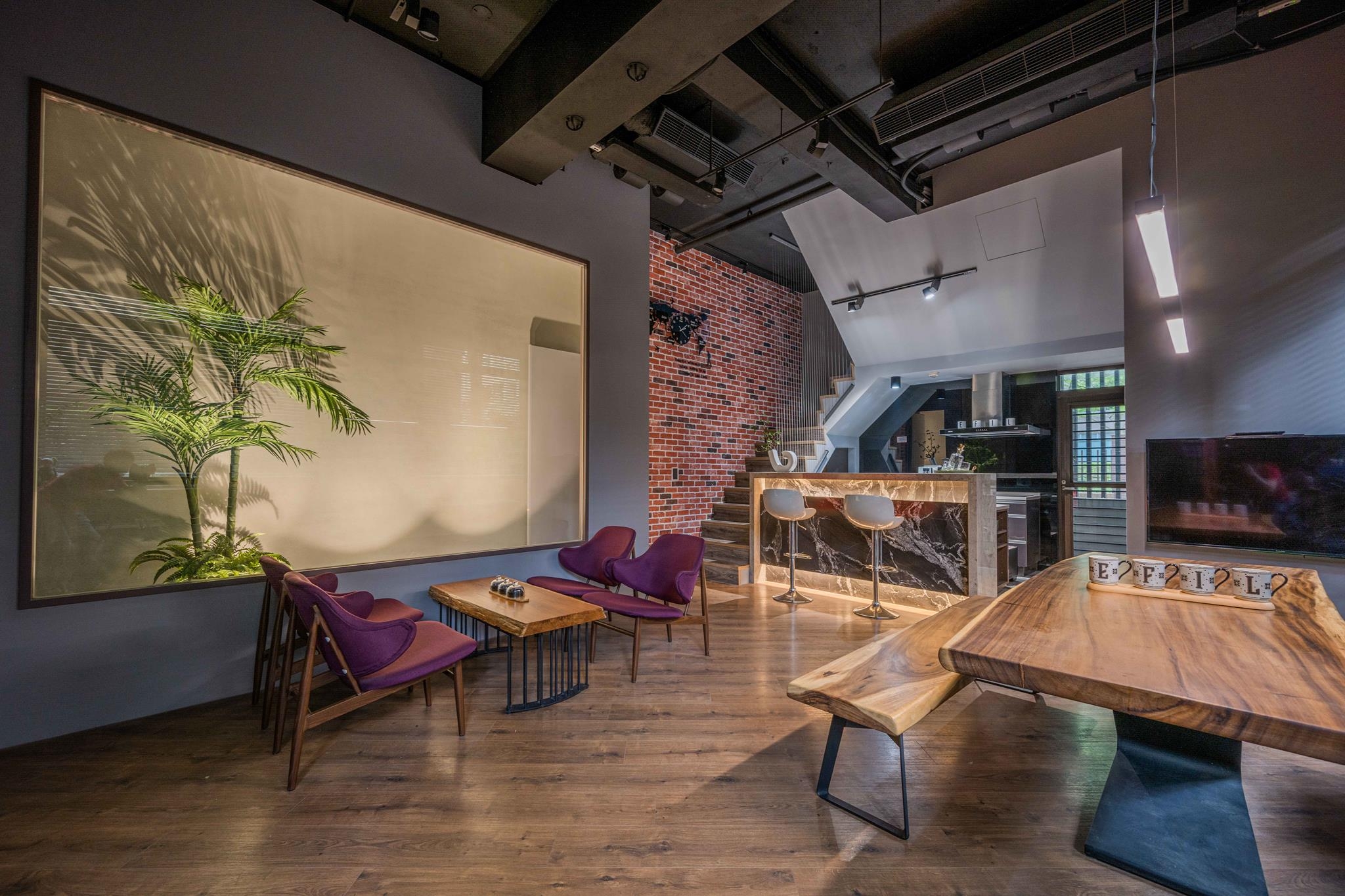 This design concept, focused on 'LIFE', emphasizes creating soulful spaces for 'nest building'. It combines elements that resonate deeply, using pathways, colors, decorations, functionality, and lighting to craft a habitat aligned with its inhabitants' lifestyles. Crafted for the design elite members of the team, this office space serves a dual function of work and display. The ground floor features a spacious, double-height reception that blends the aesthetic of a café with a cozy dining and kitchen area. An open kitchen, marble high bar, and dining space bordered by red brick walls and elegant wood furniture create a multi-layered atmosphere. The second floor offers office spaces delineated by Reeded glass partitions, promoting openness yet providing privacy. It includes a meeting room, negotiation space, and workstations designed for productivity and inspiration. A unique building materials exhibition area showcases the company's dedication to quality and design innovation, distinguishing the space from typical offices and fostering an environment that encourages creativity and embodies the company's design-led living philosophy.