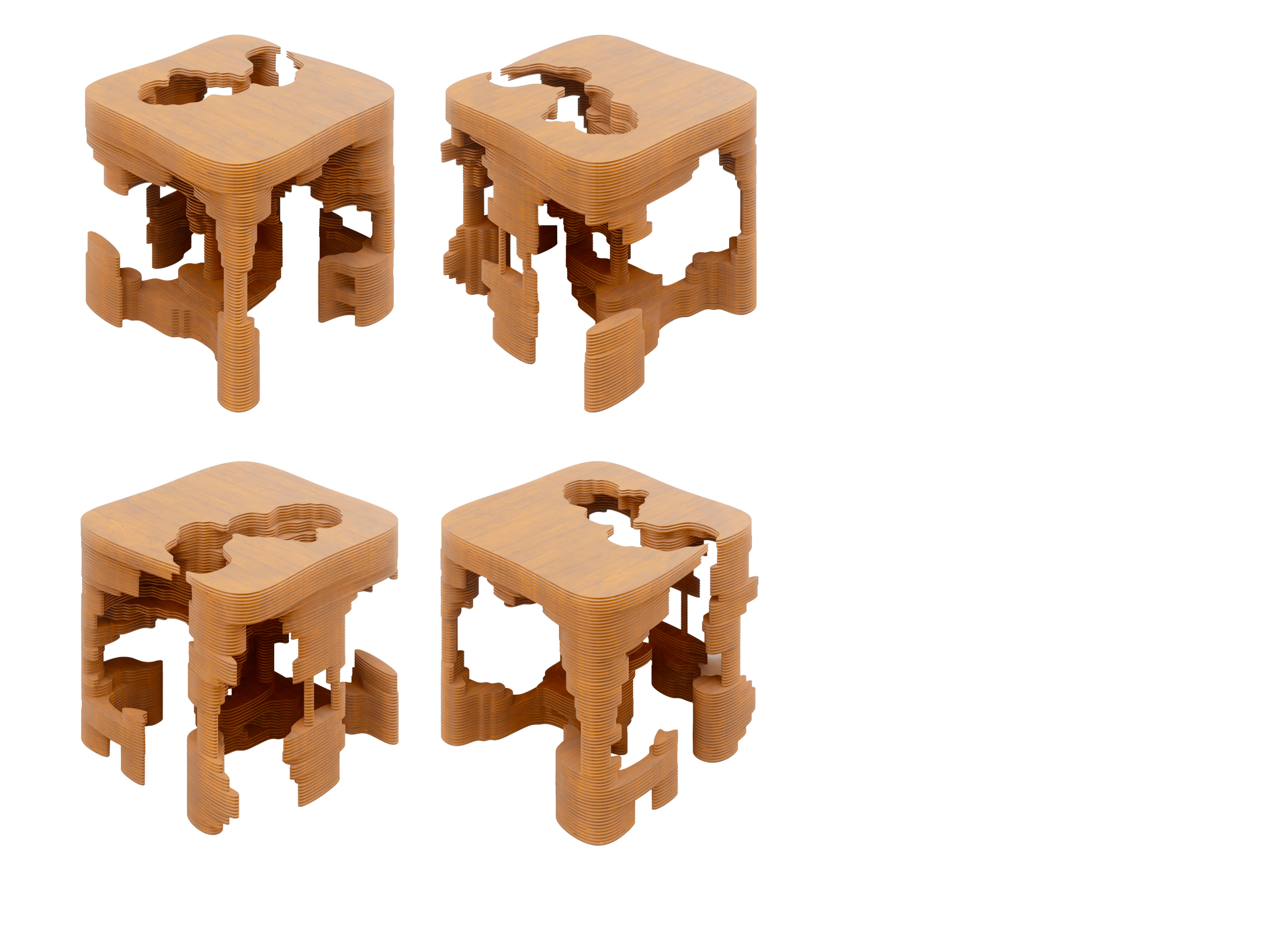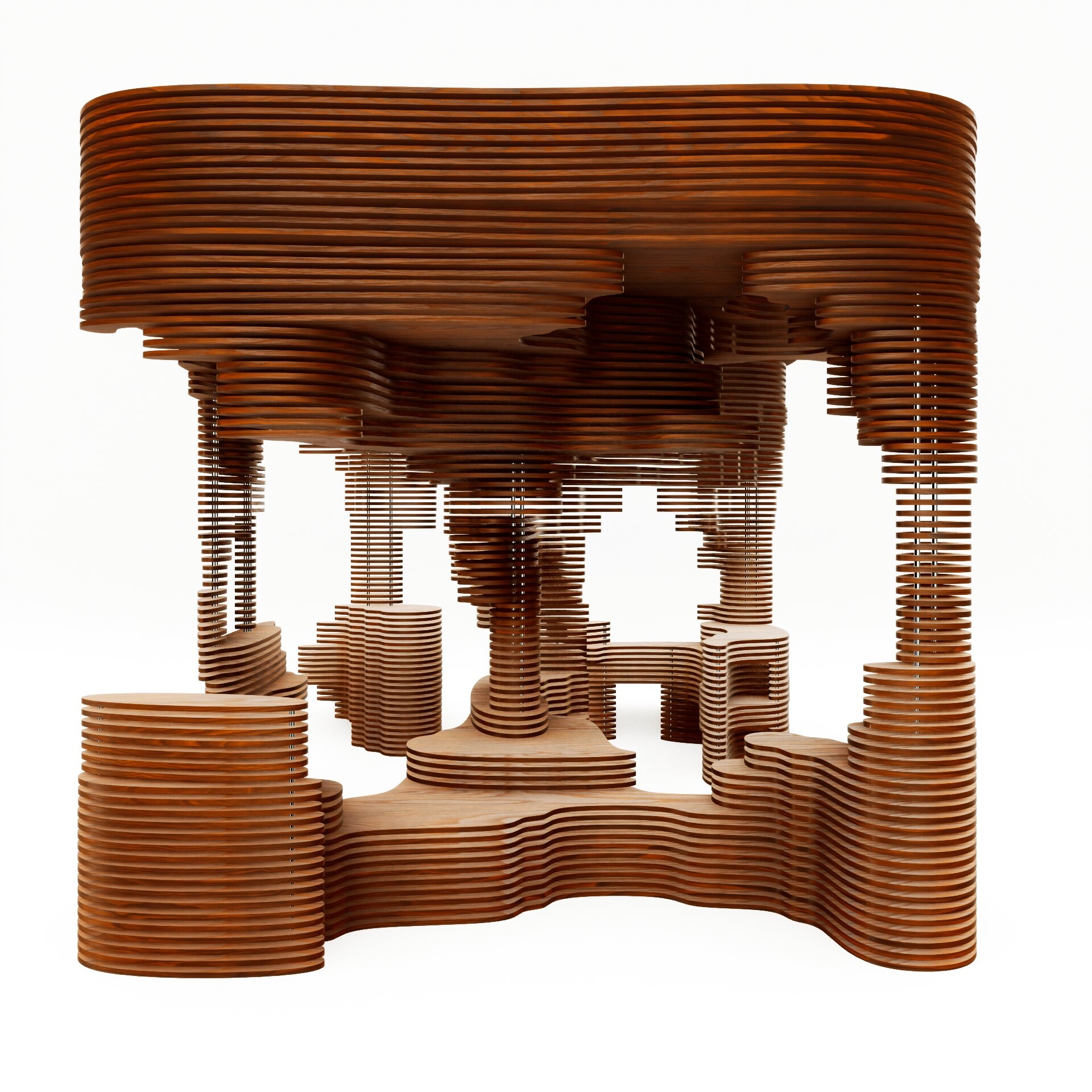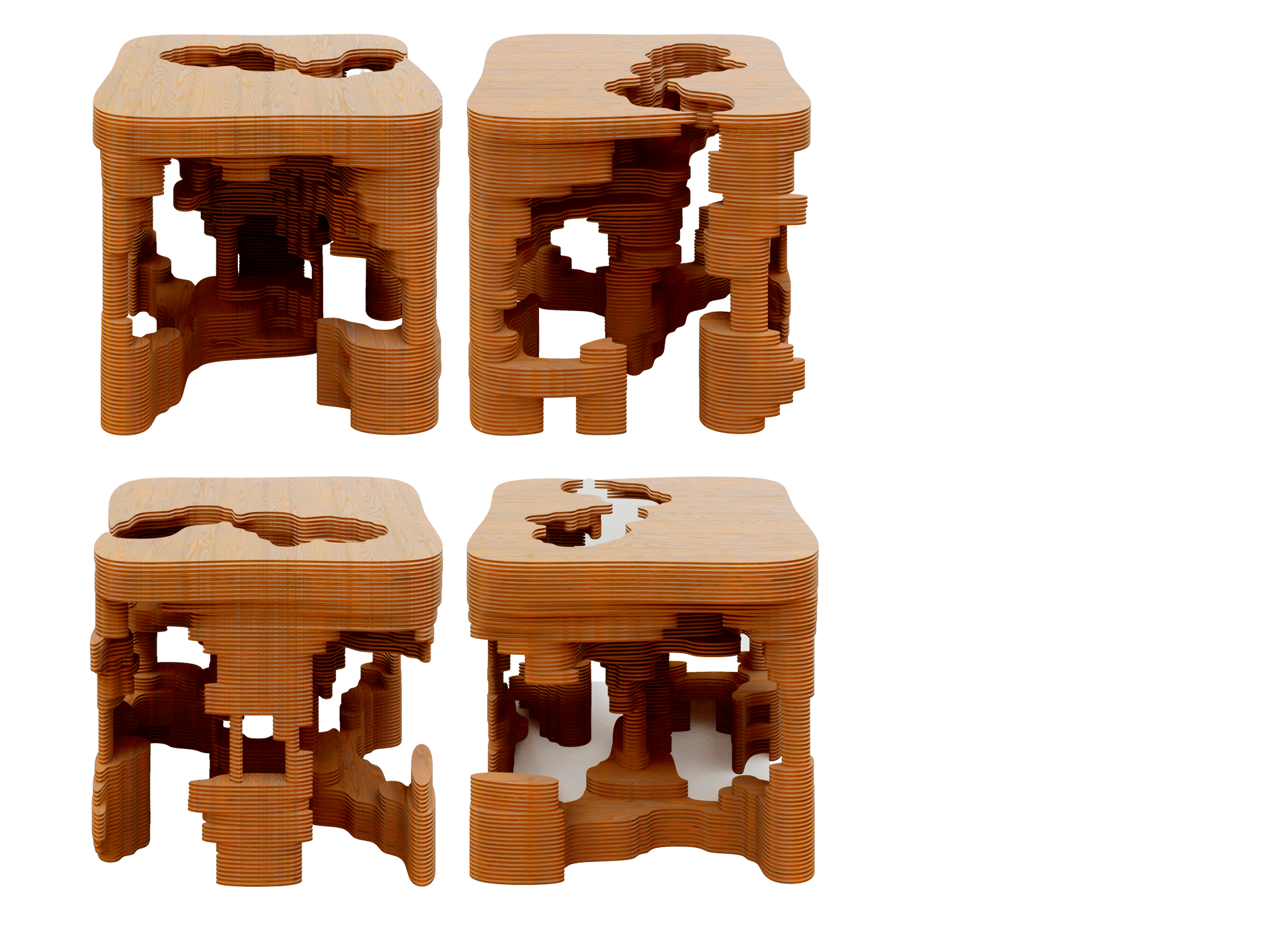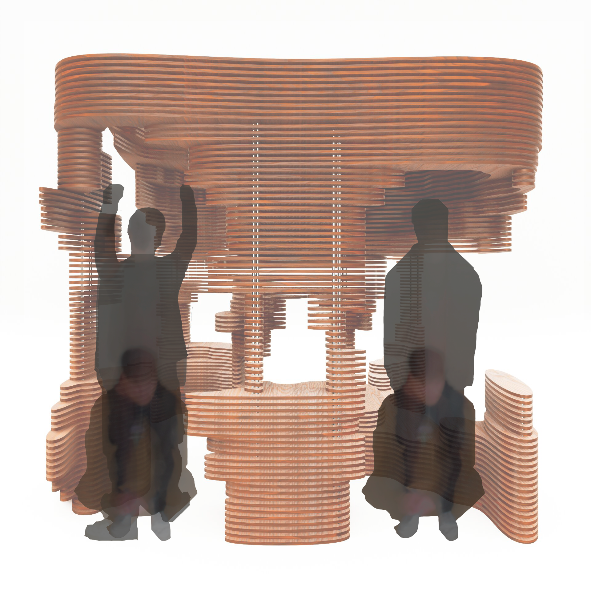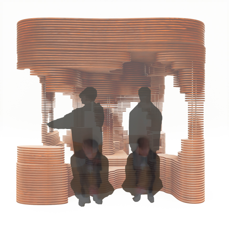 Immersive closet that reinterprets the experience of dressing as a ritual, integrating the concept of a "temple for dressing." The project aims to showcase clothing as works of art rather than hiding them. Each garment becomes part of a personal gallery, demanding an interior design that presents them attractively. Moreover, this closet is not just functional but also interacts with its surroundings. Our inspiration for the shape comes from the erosion of rocks. Thus, the user acts as the erosive agent, much like nature sculpts rocks over time.