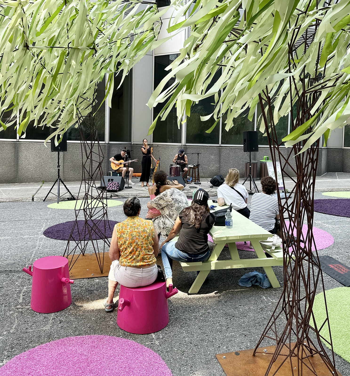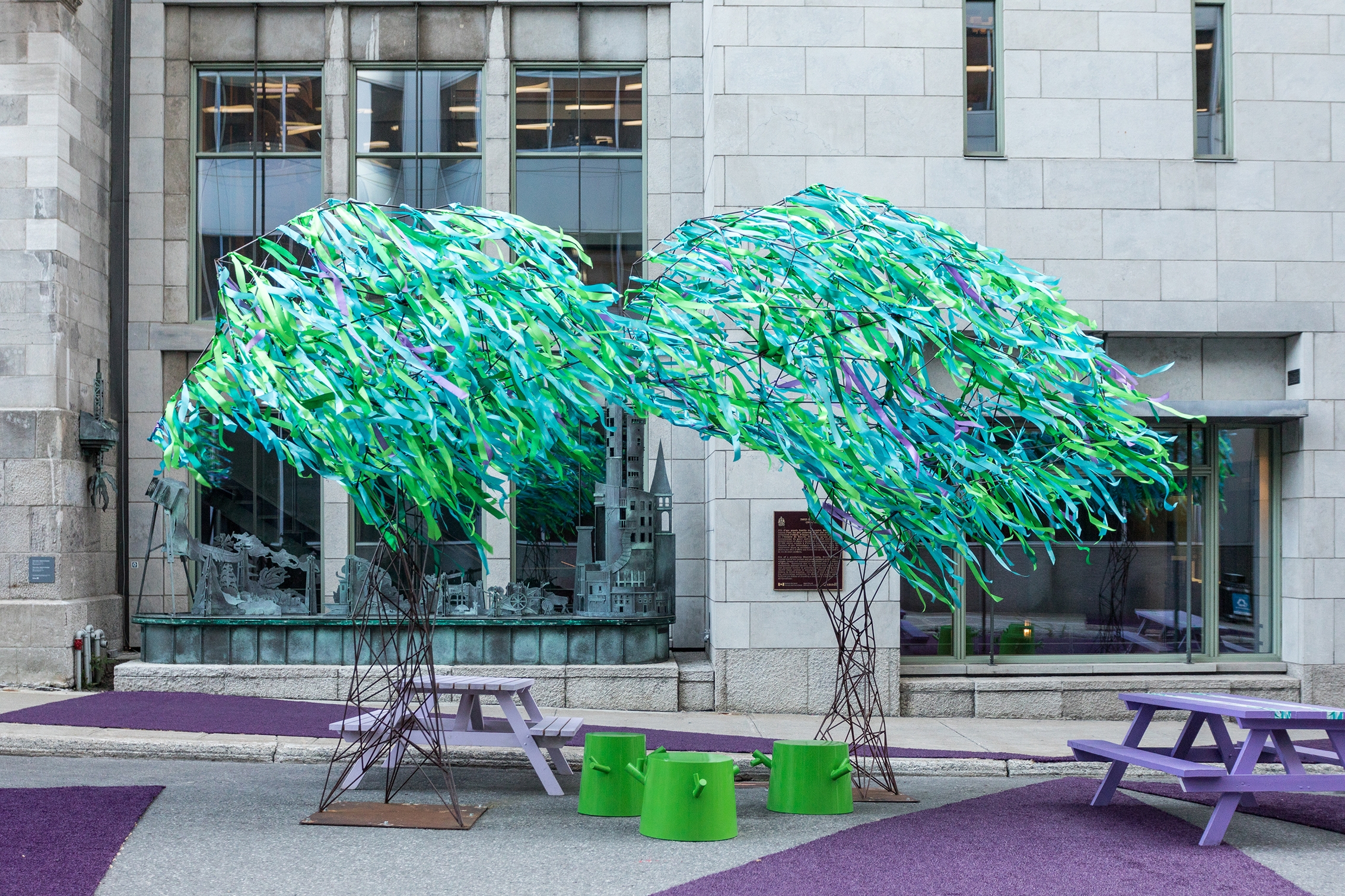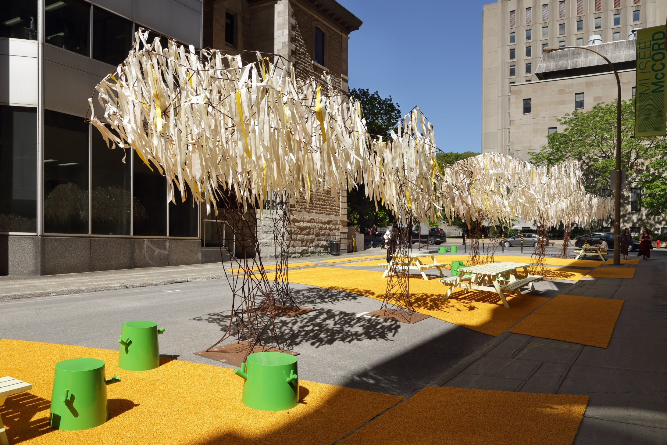 The Log Stools are meticulously designed to complement the aesthetic of the Urban Forest, an annual temporary road transformation on Victoria Street in Montreal, Canada, throughout the summer months. These stools are tailored to accommodate participants in various museum programs and city-organized cultural events and extend a warm invitation to casual passersby, encouraging spontaneous moments of relaxation and connection within this dynamic space.