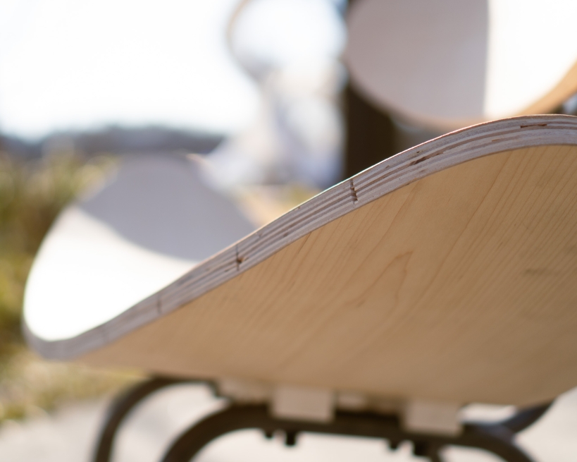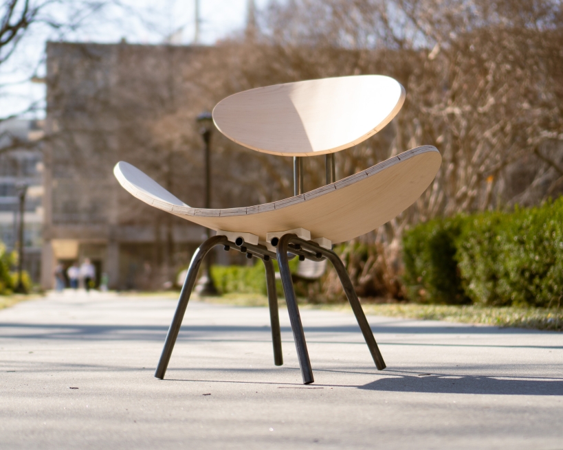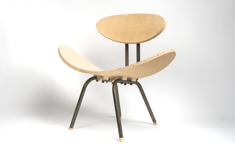 The PKL is a minimalist lounge chair designed to fit into a modern home. The PKL takes inspiration from Eames and other designers to create a truly unique and ergonomic design. It utilizes large curves in the form of bent tubular steel legs and kerf cut wood to hug the user and provide ample support.