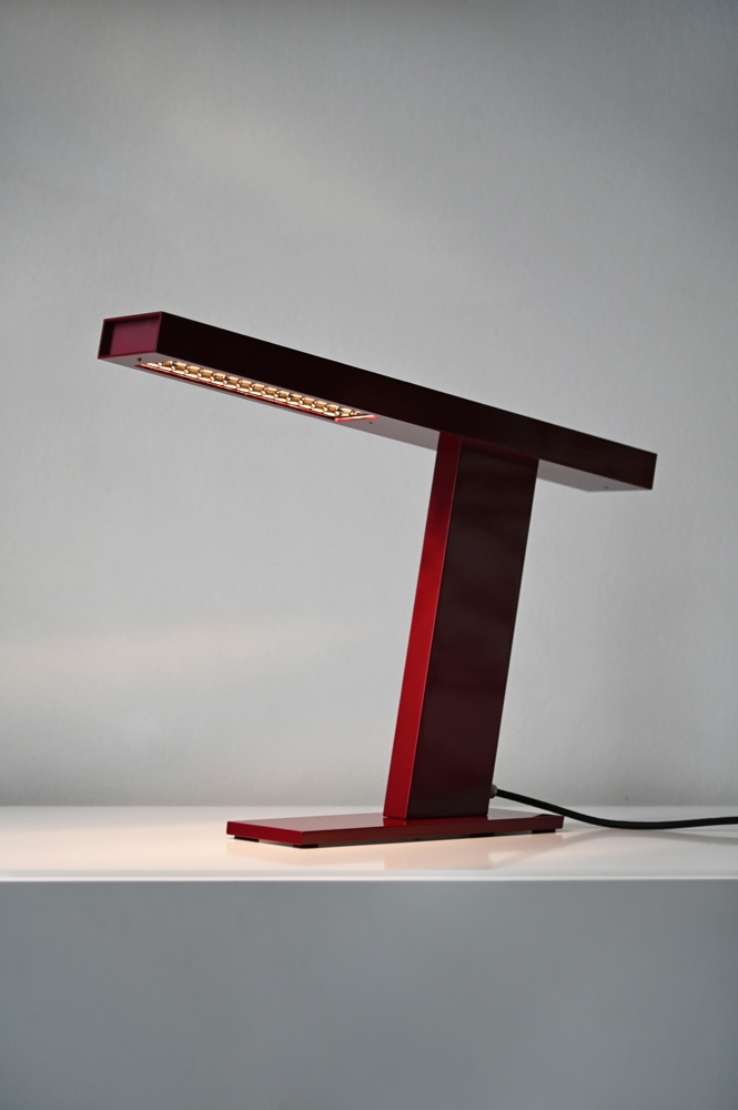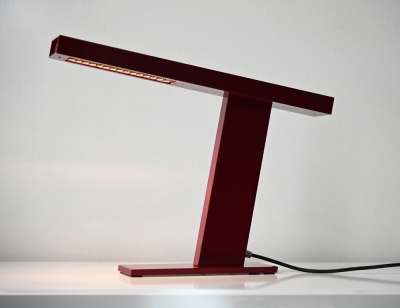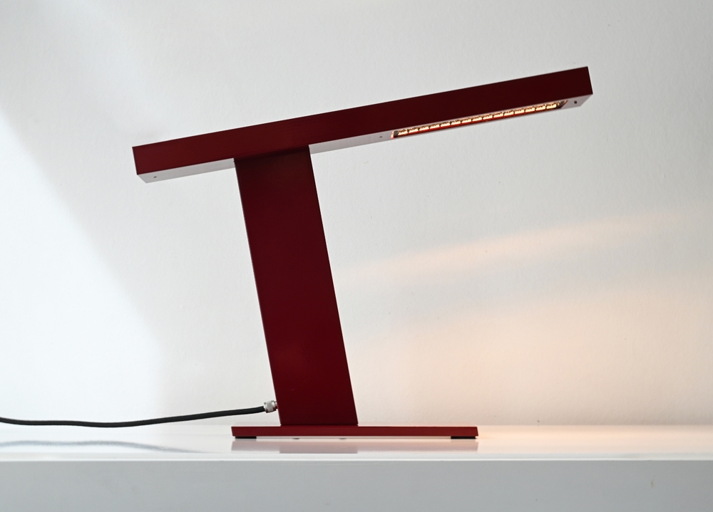 The ALU-T table lamp features a simple yet powerful design with an architectural appeal. It is constructed from a basic rectangular aluminium extrusion profile. To avoid visible weld seams, custom plastic connectors were developed, and inserted into the profiles, remaining out of sight. This results in clean, sharp profile connections. A thick steel plate is discreetly mounted at the base, hidden from view for stability. The straightforward construction allows for local production. Aluminium and steel are easily recyclable materials, supporting a circular lifecycle. The lamp uses dimmable LED strips, evenly diffusing light at the bottom through a louvred profile that prevents glare. Perforations at the top of the light profile create a soft, diffuse light. Its minimalist design makes the lamp versatile for various interiors. With its sculptural form, the lamp draws attention without being intrusive, creating a dialogue with its surroundings. Customers can personalize the lamp by choosing from a variety of available colours.