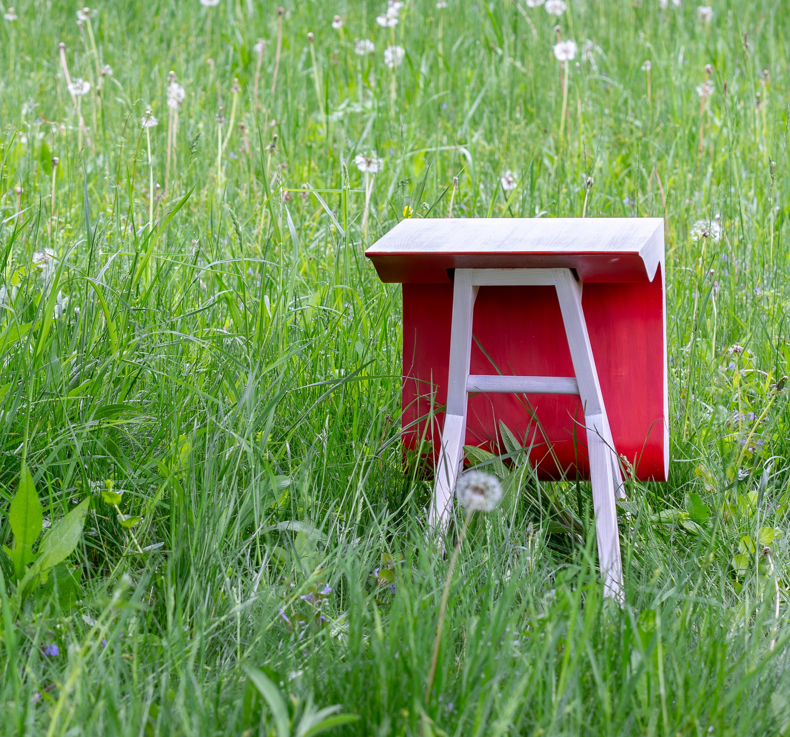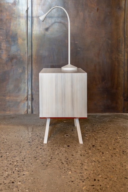 A clean cube from one angle and a sensuous curve from another, the placement of this stool in a space can be oriented in manner as a quiet gesture or a bold announcement.