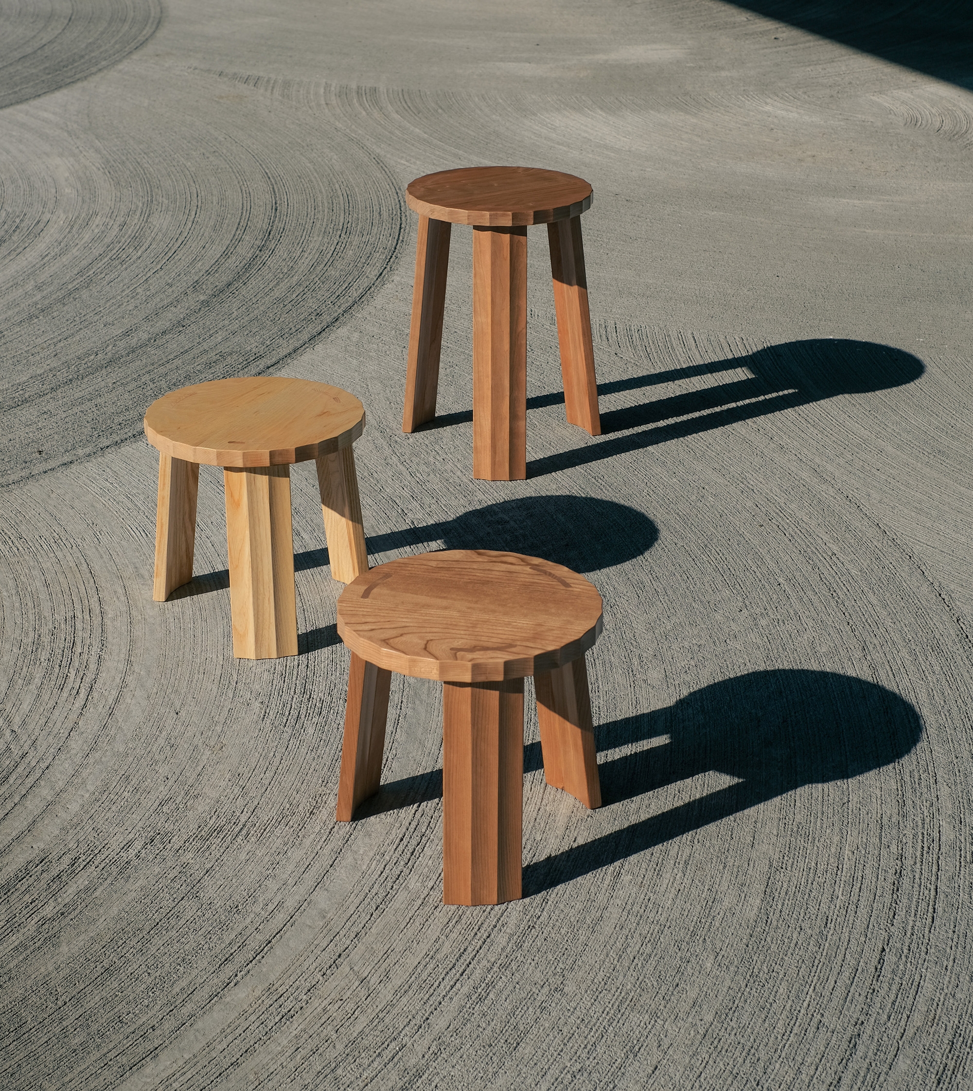 The Fold Stool draws inspiration from the subtle interplay of light and form, exploring how light interacts with angled surfaces, where shifts in geometry create varying brightness and shadows. Although the material remains constant, each facet of the stool reflects light differently depending on its orientation, allowing the same surface to present distinct visual characteristics. This play of light transforms the stool from a static object into something that feels alive, responding to its environment as the day progresses. It’s an exercise in balance—between consistency and change—inviting users to experience how light can alter and redefine even the simplest forms.