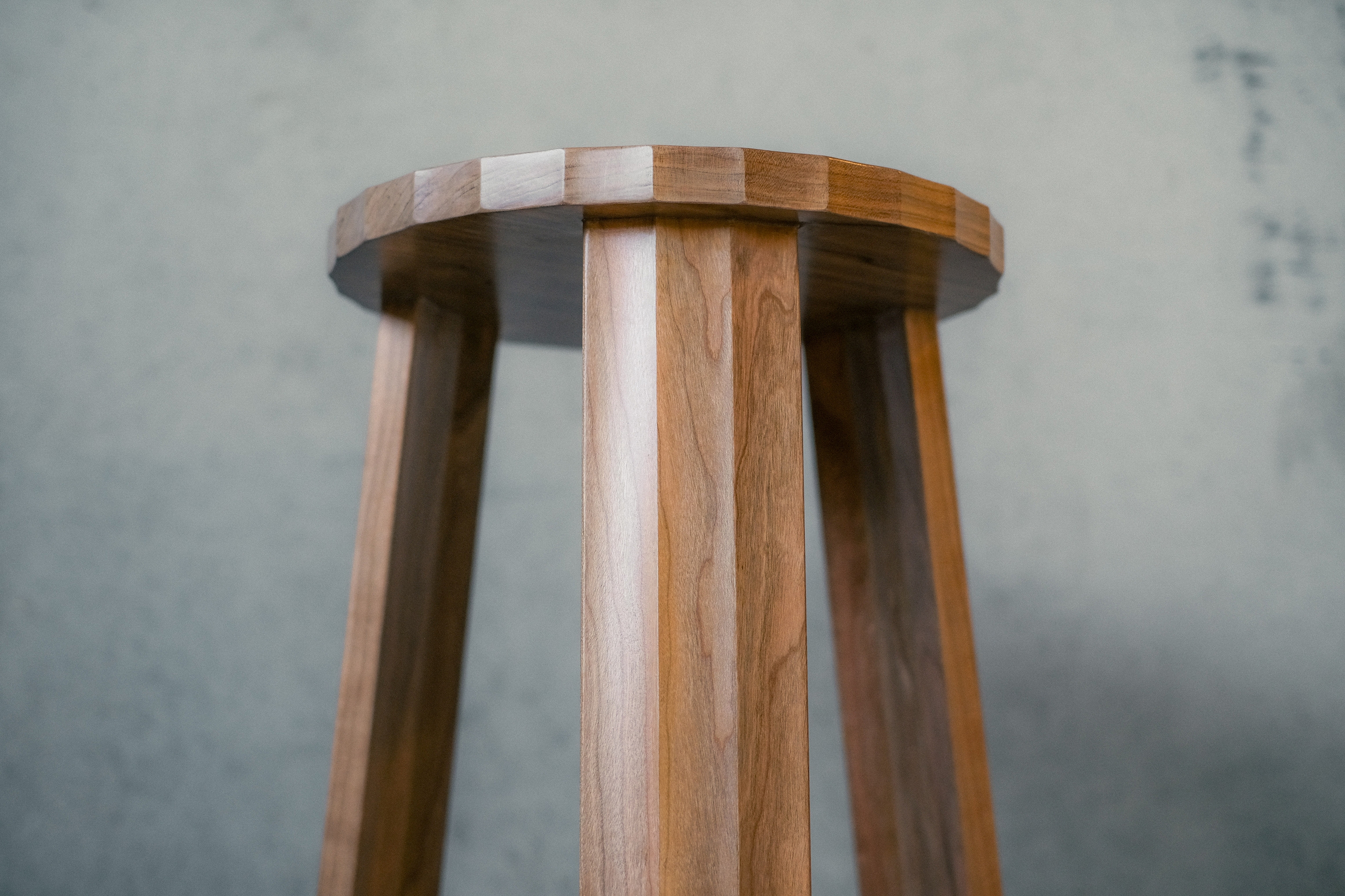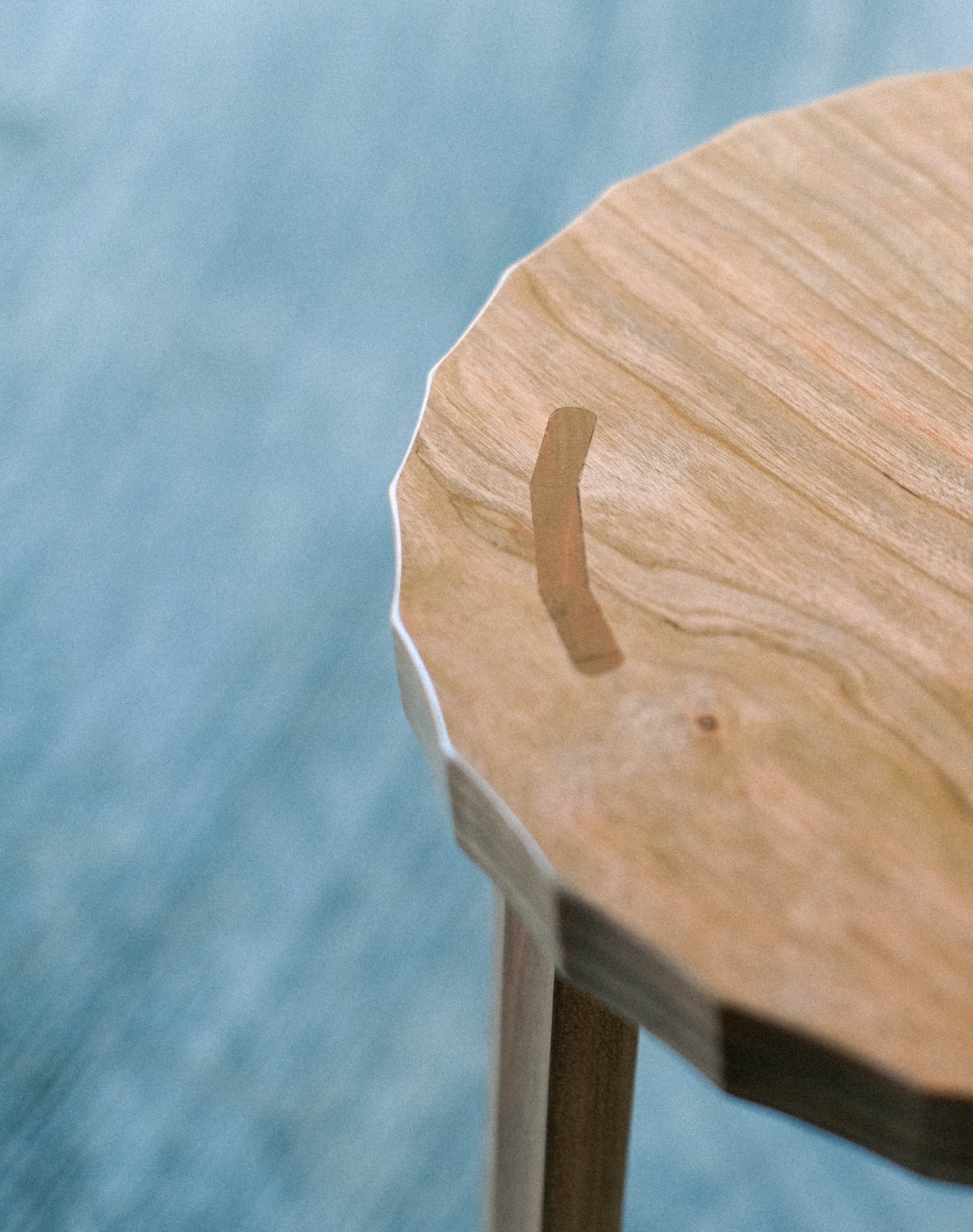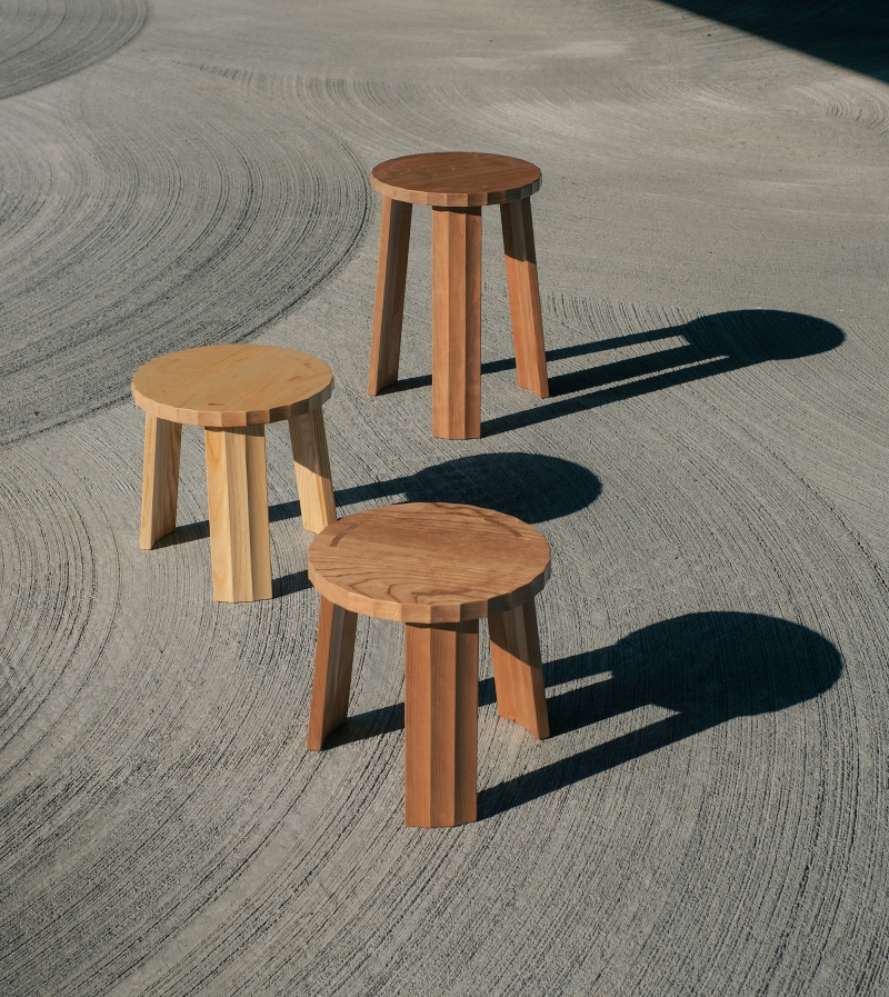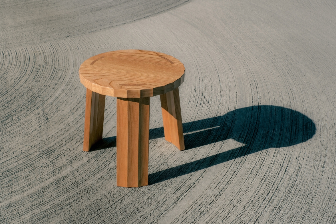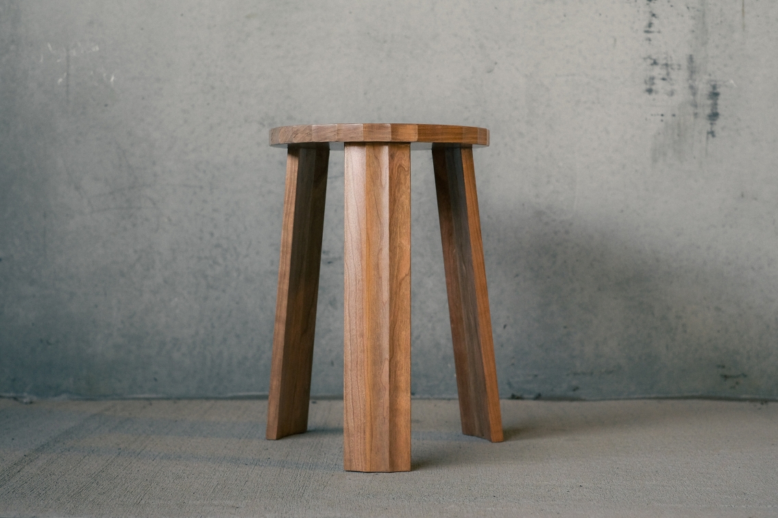 At the core of the Fold Stool is a minimal yet functional approach to wood joinery. The angular facets are not only a design feature but also a structural solution. The faceted mortises continue through the seat, forming a seamless and sturdy connection between the legs and top. This detail emphasizes the stool’s durability while maintaining consistency in its iconic silhouette.