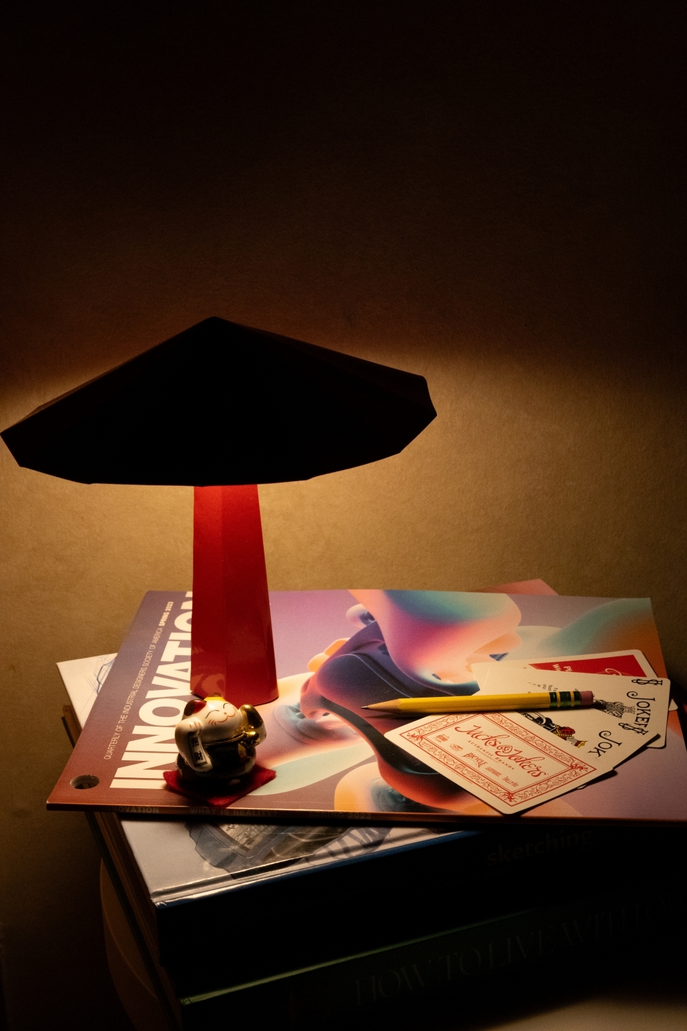The Mai Lamp is a portable task lamp designed for those who work or do activities later in the evening, but want a concentrated light to not bother others. The lamp's main inspiration is from the traditional Vietnamese hat, which provides shade and can be tilted as the user pleases.