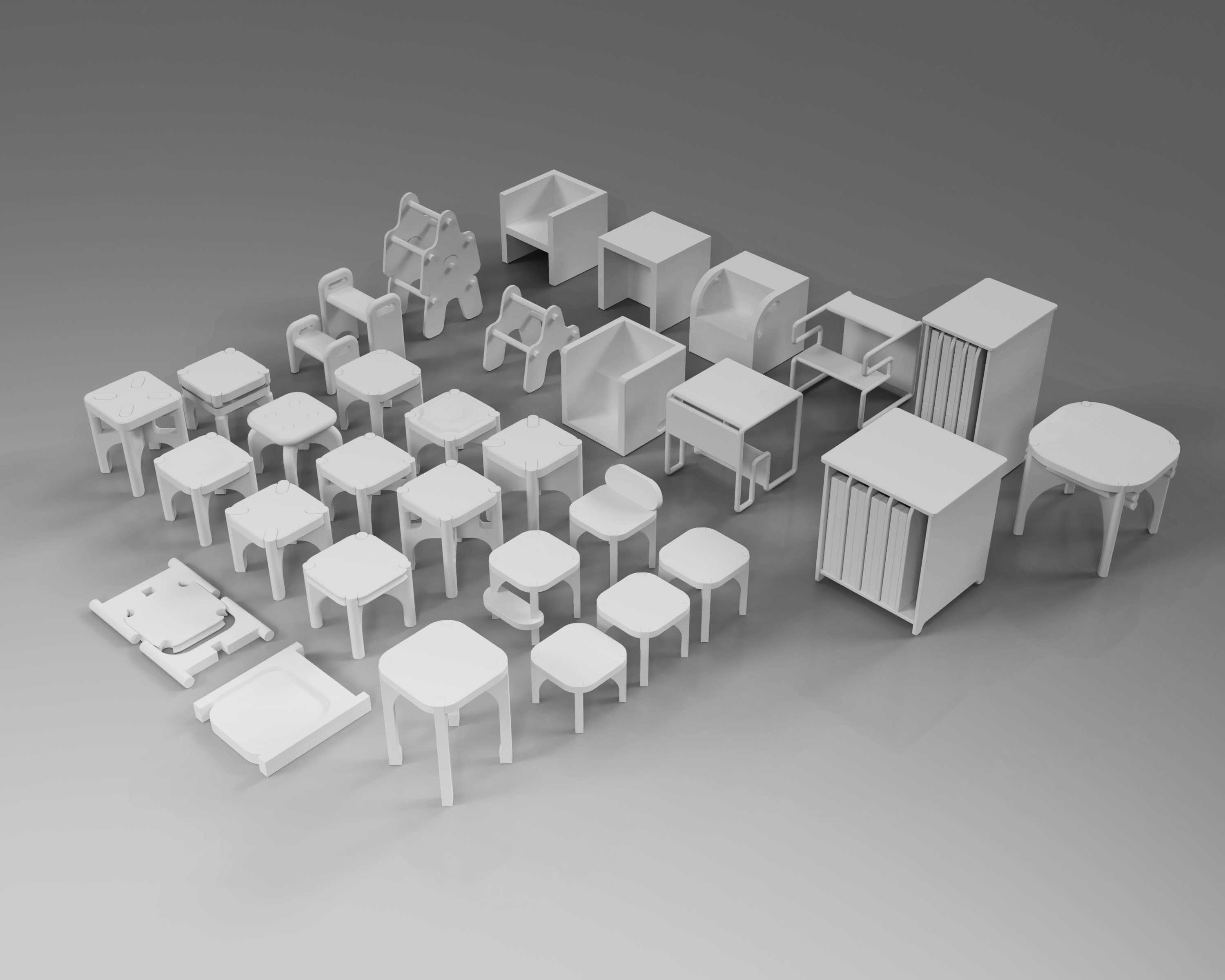 Simple and quick assembly/disassembly allows for compact storage in the included side table when the stools are not in use. Perch also engages children with event setup, fostering a sense of helpfulness and inclusion. Most importantly, these stools encourage interactions across generations, strengthening family bonds and promoting social development.
