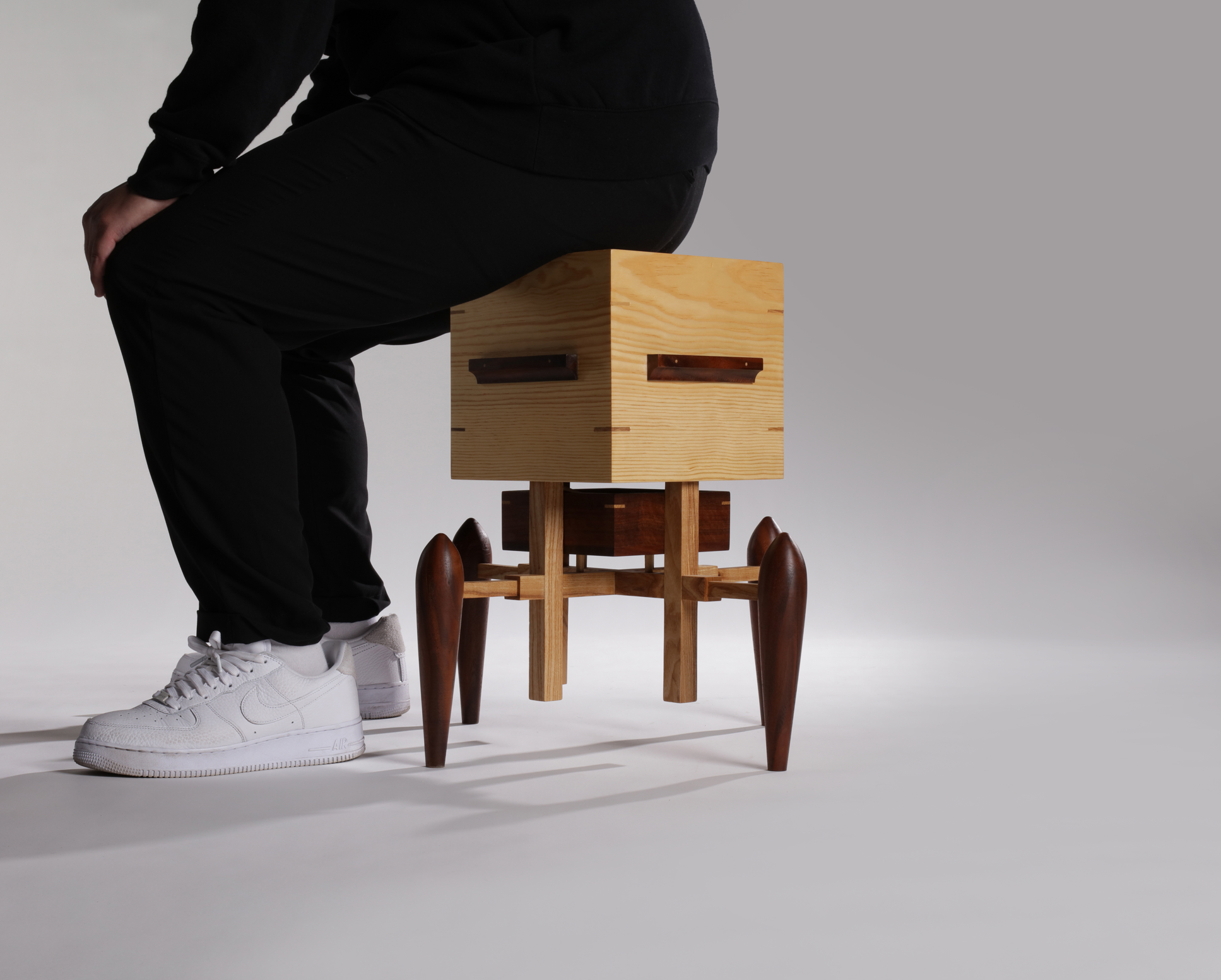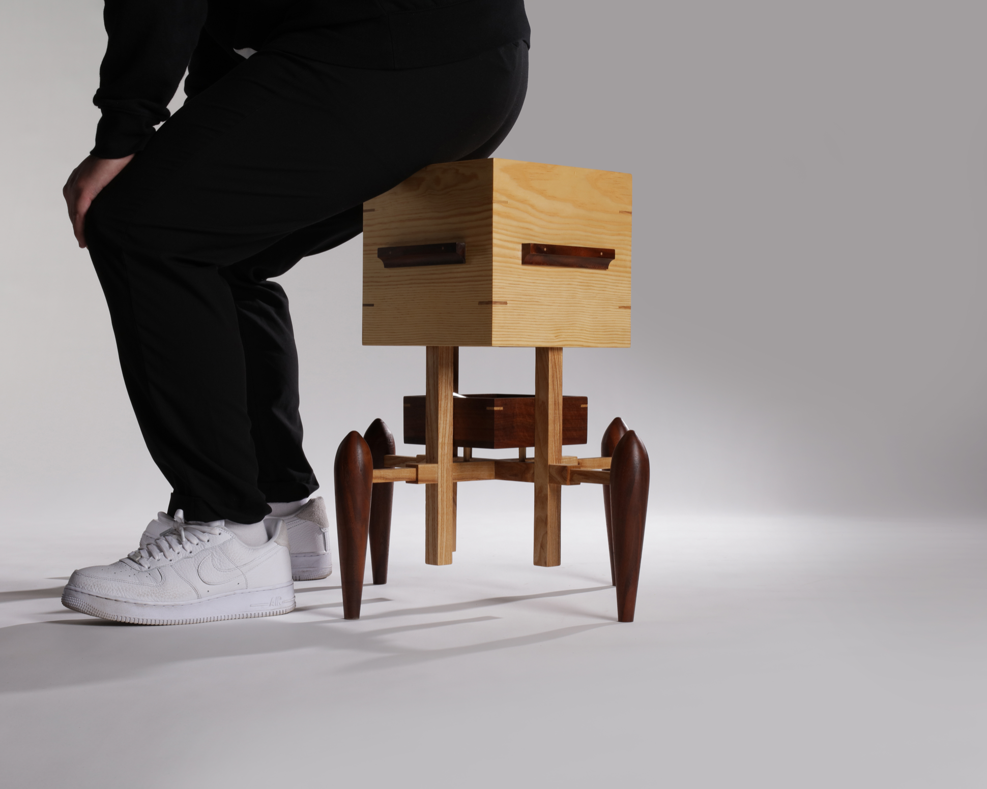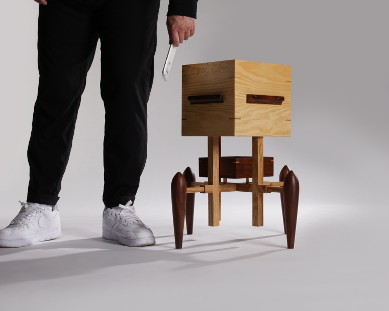 This stool was designed with that idea in mind—a piece that encourages us to put down our phones and engage in more genuine interactions. Its unique, robot-like appearance reflects a playful twist on traditional seating, sparking curiosity and conversation.