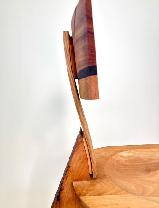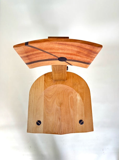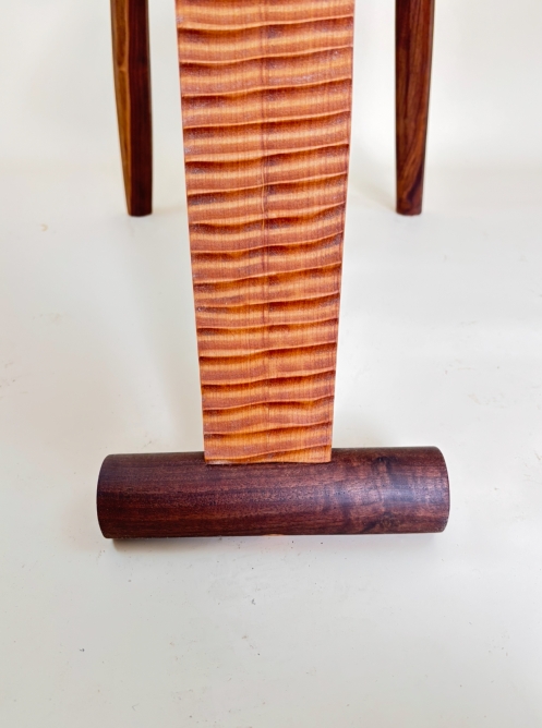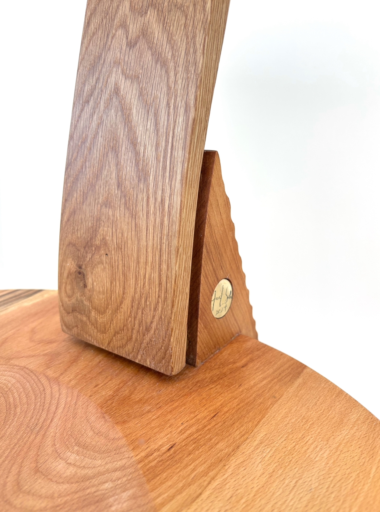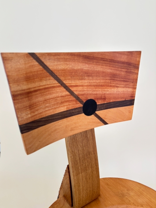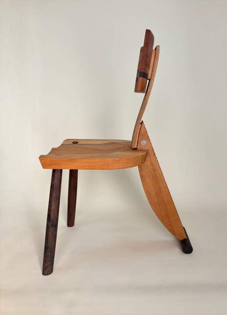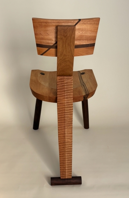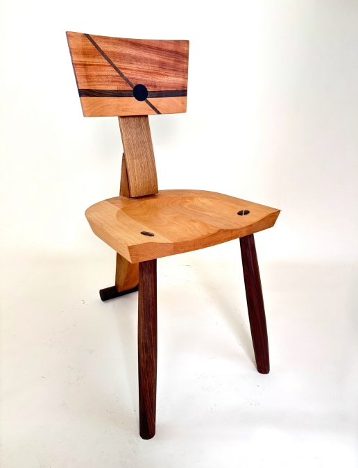 Three legged contemporary chair made of European Beech, African Mahogany, and Walnut.