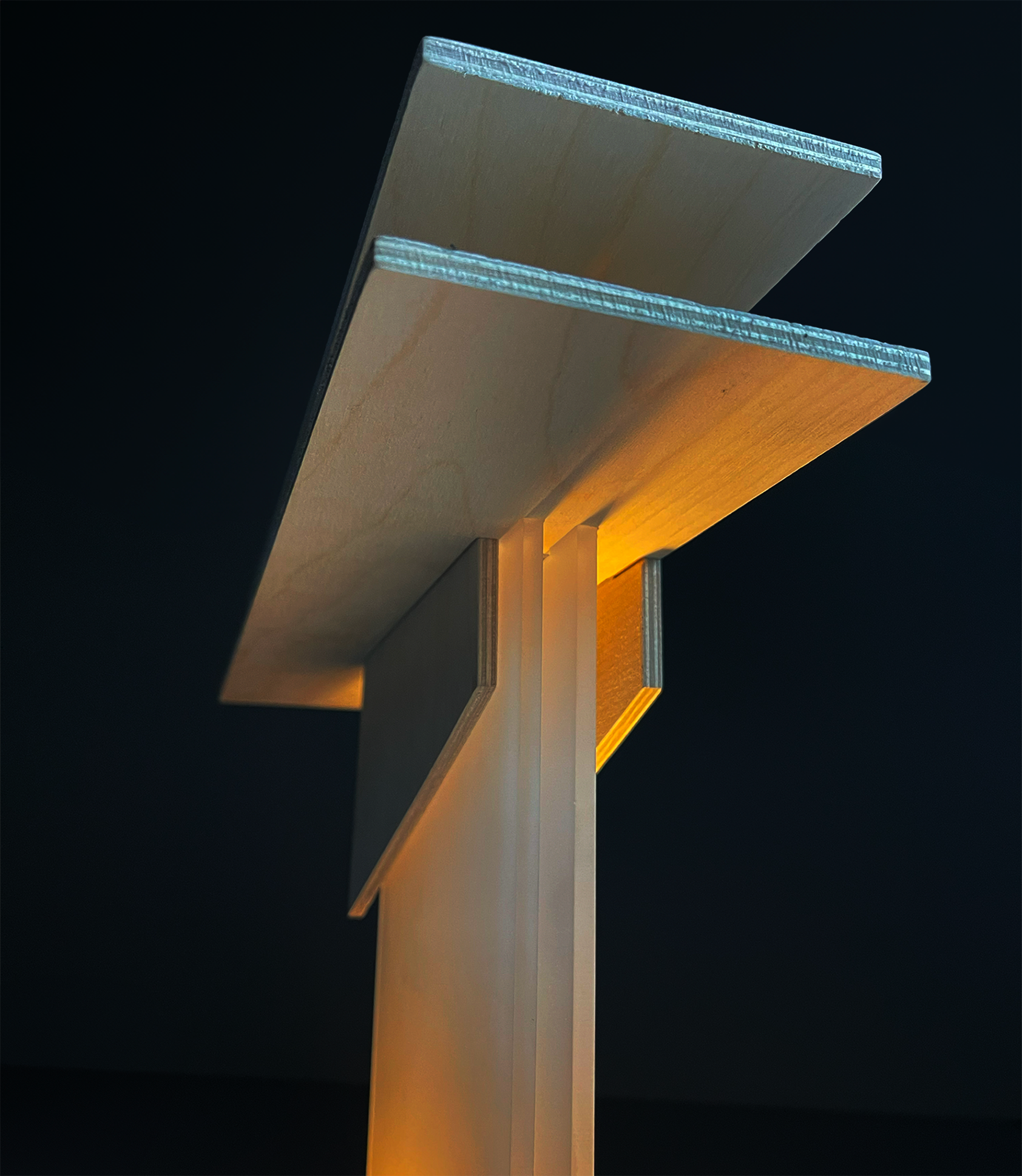The sustainability of this project is rooted in its use of renewable materials, like birch wood, which is both durable and eco-friendly. Inspired by Frank Lloyd Wright’s design principles, this lamp combines art, sustainability, and functionality with its clean lines and renewable birch wood construction. The flat-pack, tool-free design reduces packaging waste and transportation impact while offering easy assembly. Its modular structure allows for quick, user-friendly building and disassembly, ensuring flexibility and ease of use. With its timeless aesthetic and eco-conscious materials, this lamp provides a versatile and sustainable lighting solution for any environment, staying true to the balance of art and design.