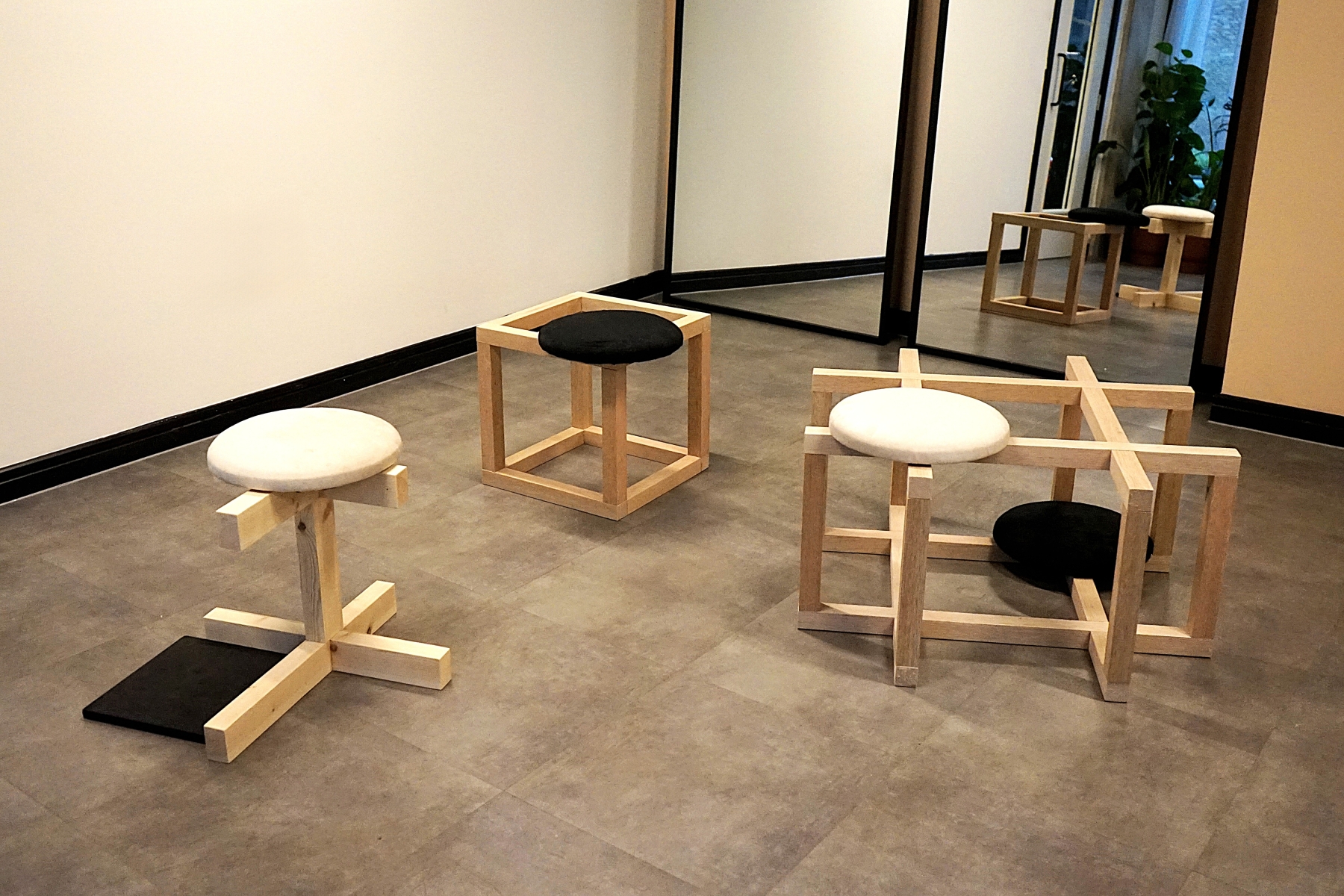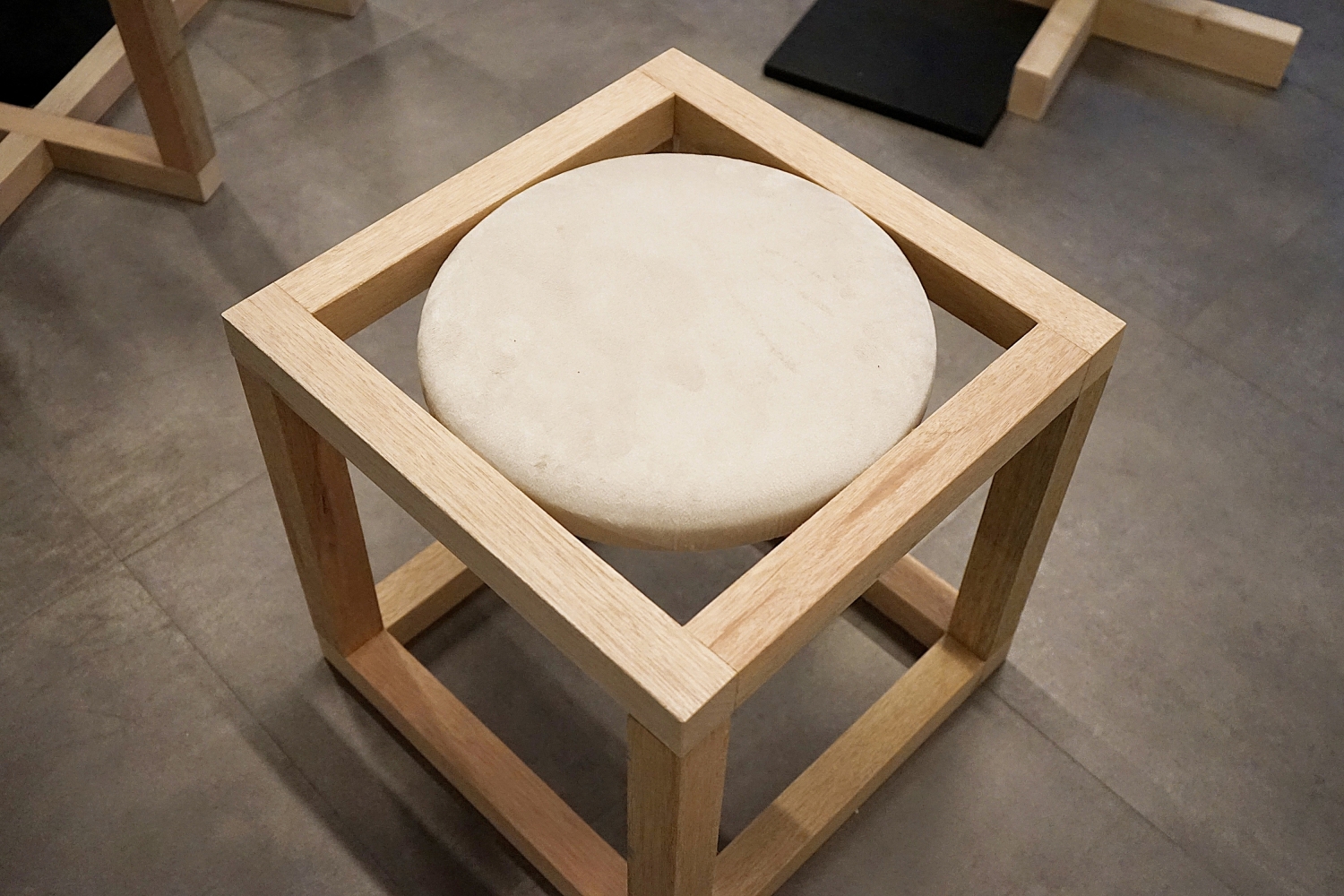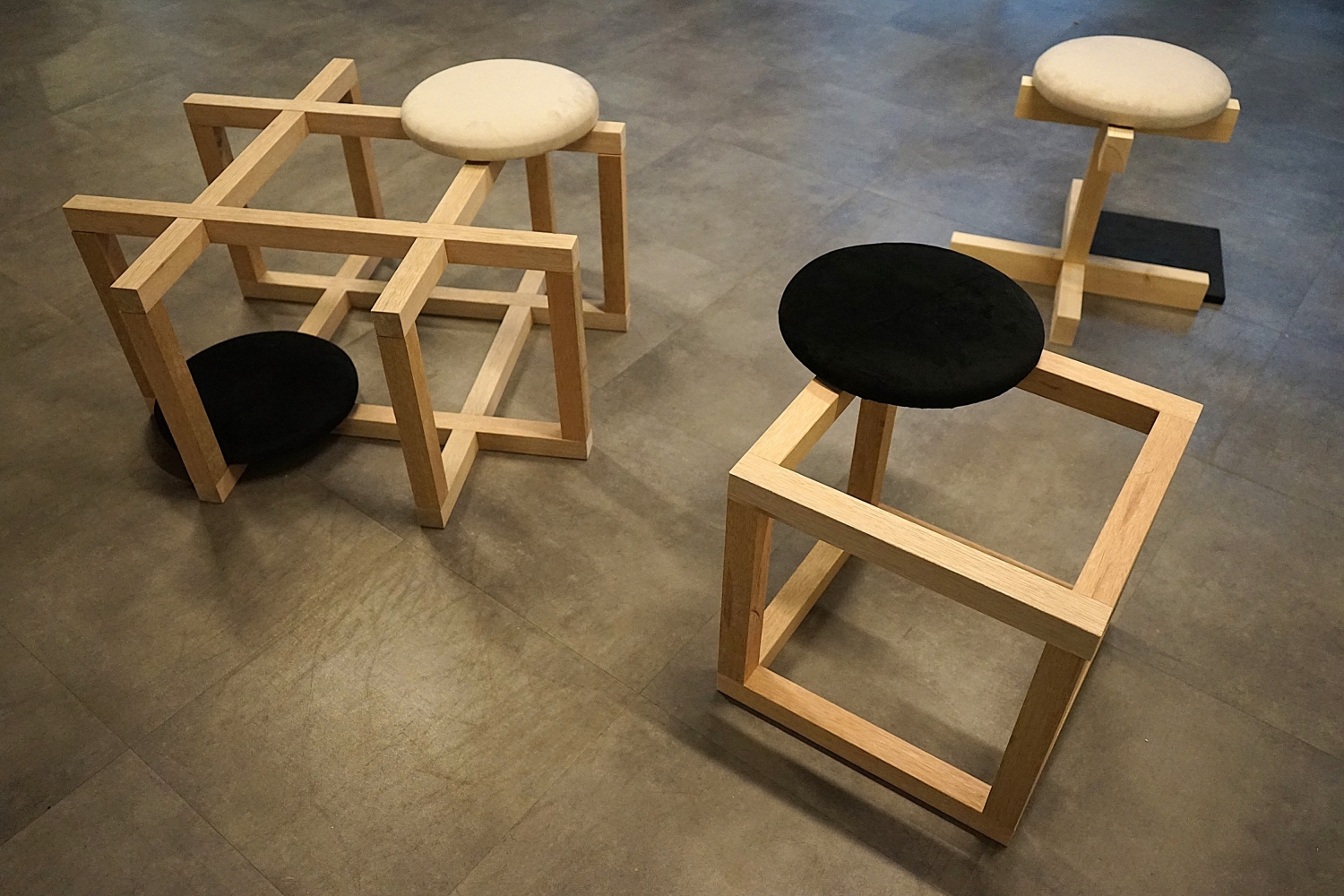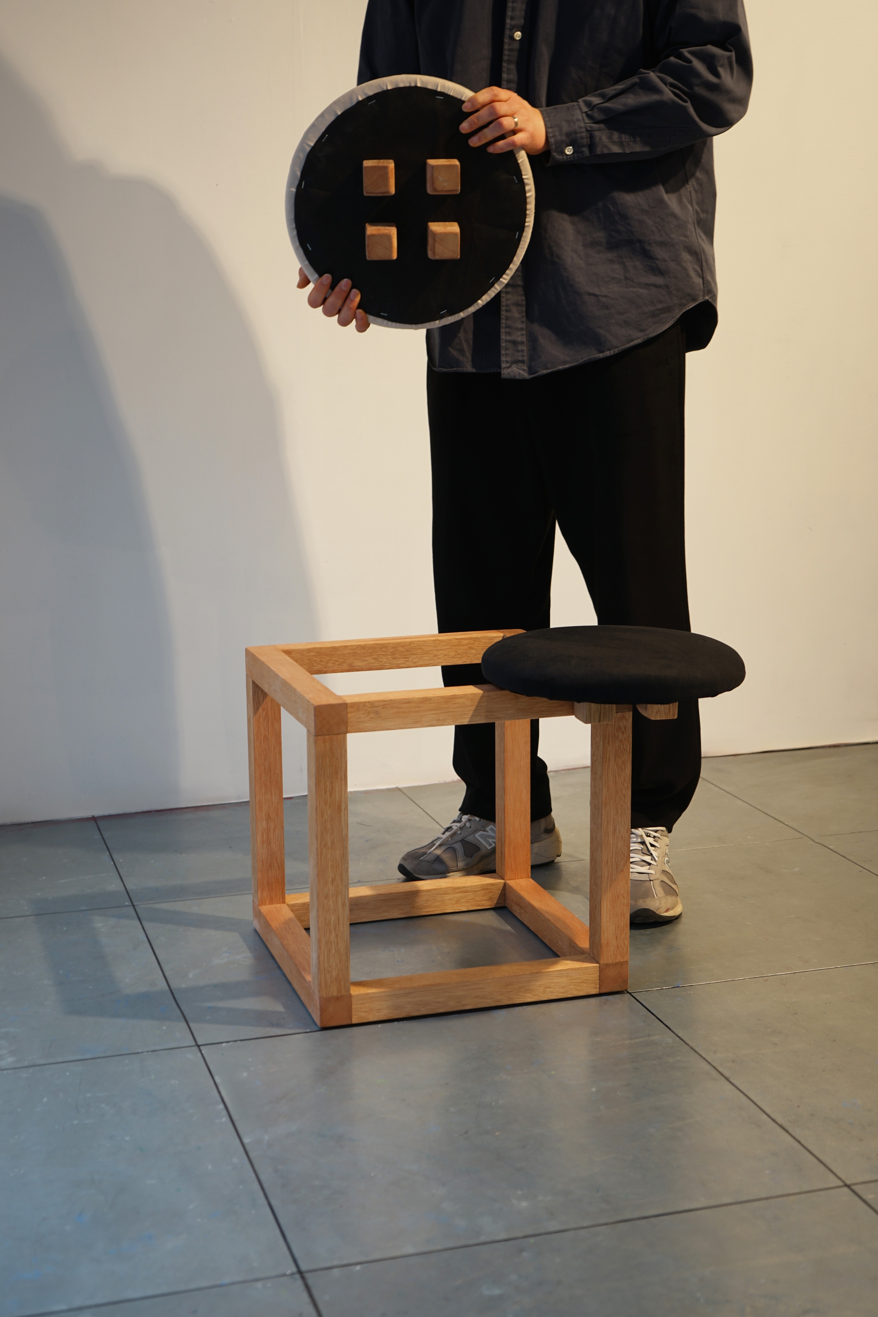Go System is a work that expresses this idea by transforming discarded waste materials into furniture that can be arranged in everyday spaces. When considering a cube, if we focus on the faces, only one person can sit on the top. However, if we focus on the lines and the intersections where they meet, four people can sit at the top corners. By placing circular discs, like Go stones, onto the frame structure made of lines, the possibilities of how the space can be utilized by many people are expanded.