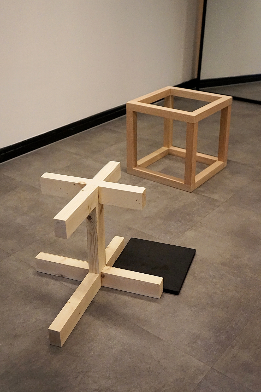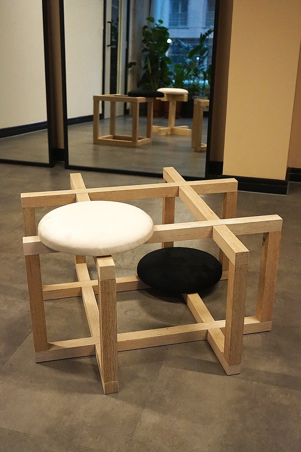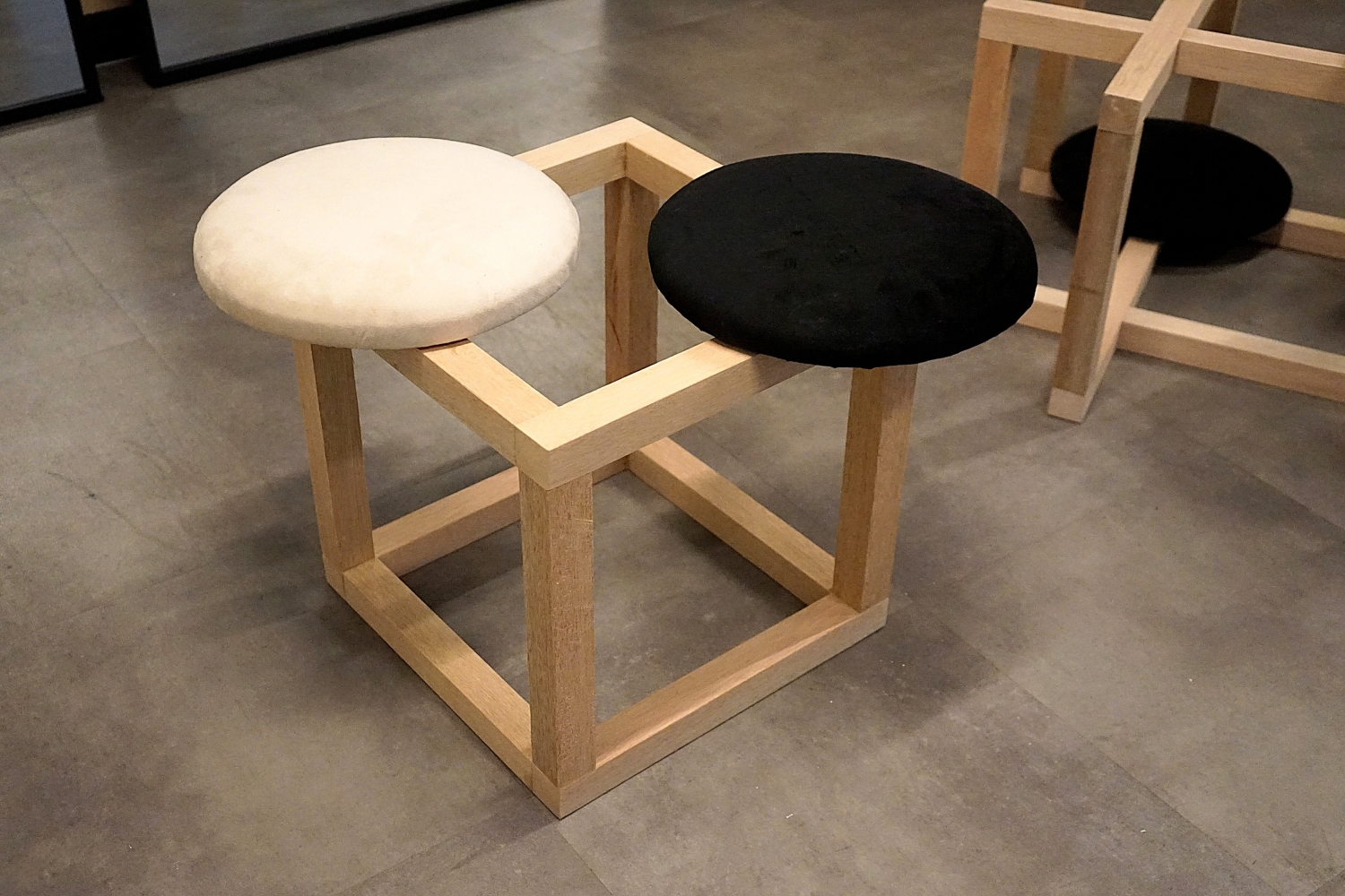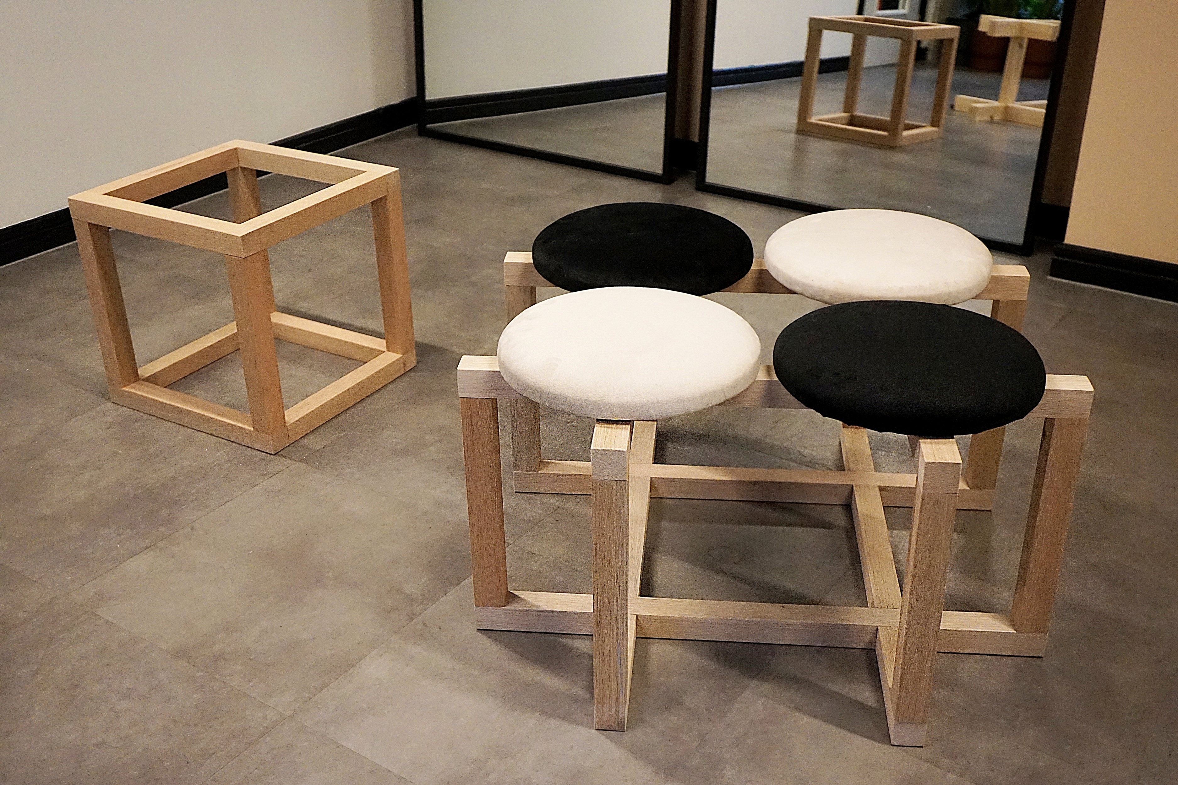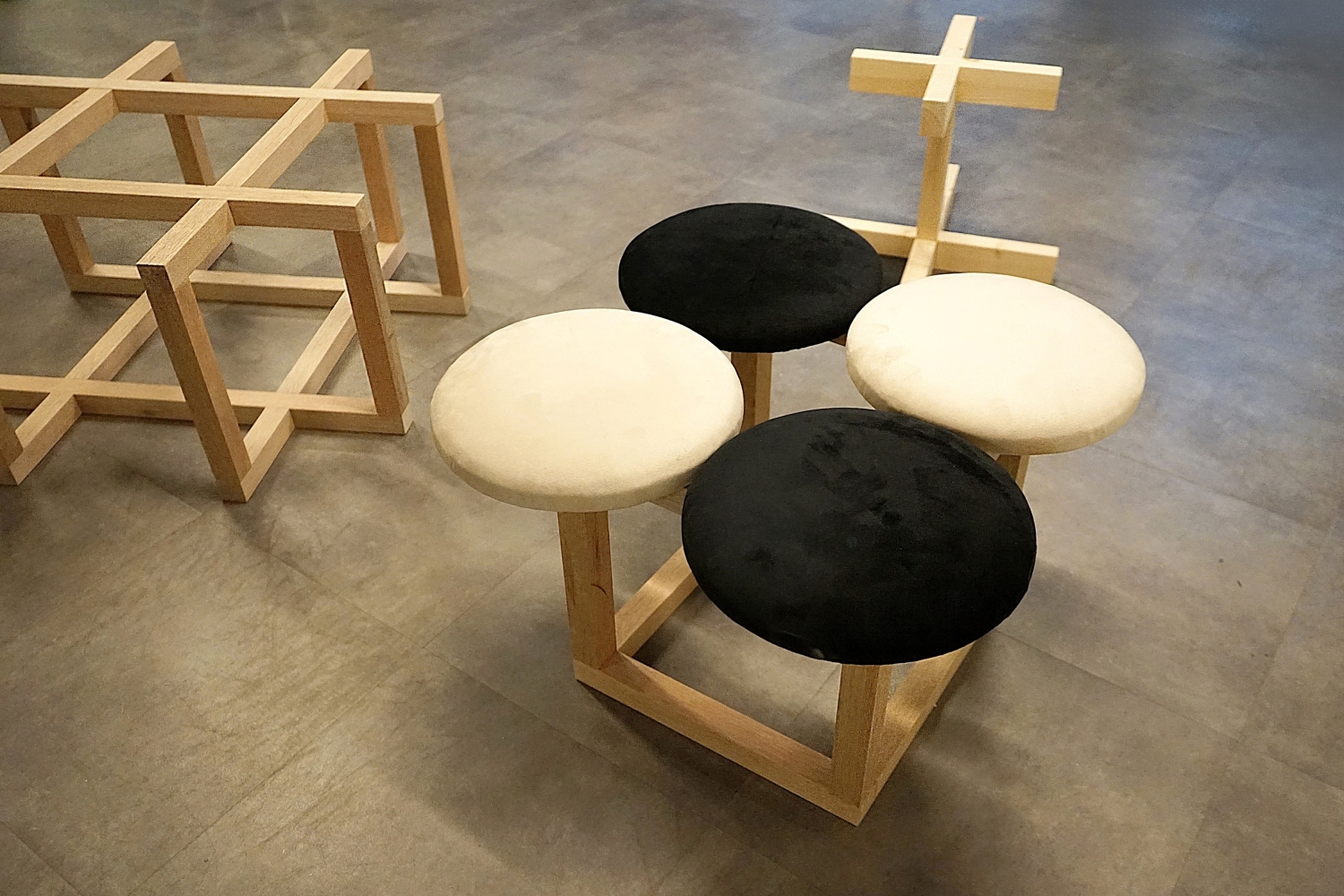 Go System is a work that expresses this idea by transforming discarded waste materials into furniture that can be arranged in everyday spaces. When considering a cube, if we focus on the faces, only one person can sit on the top. However, if we focus on the lines and the intersections where they meet, four people can sit at the top corners. By placing circular discs, like Go stones, onto the frame structure made of lines, the possibilities of how the space can be utilized by many people are expanded.
