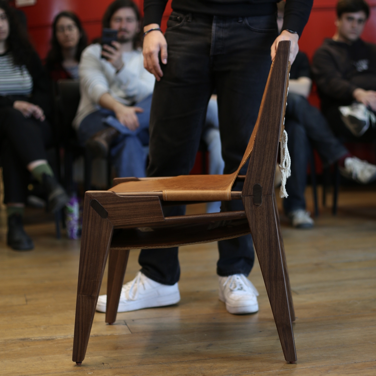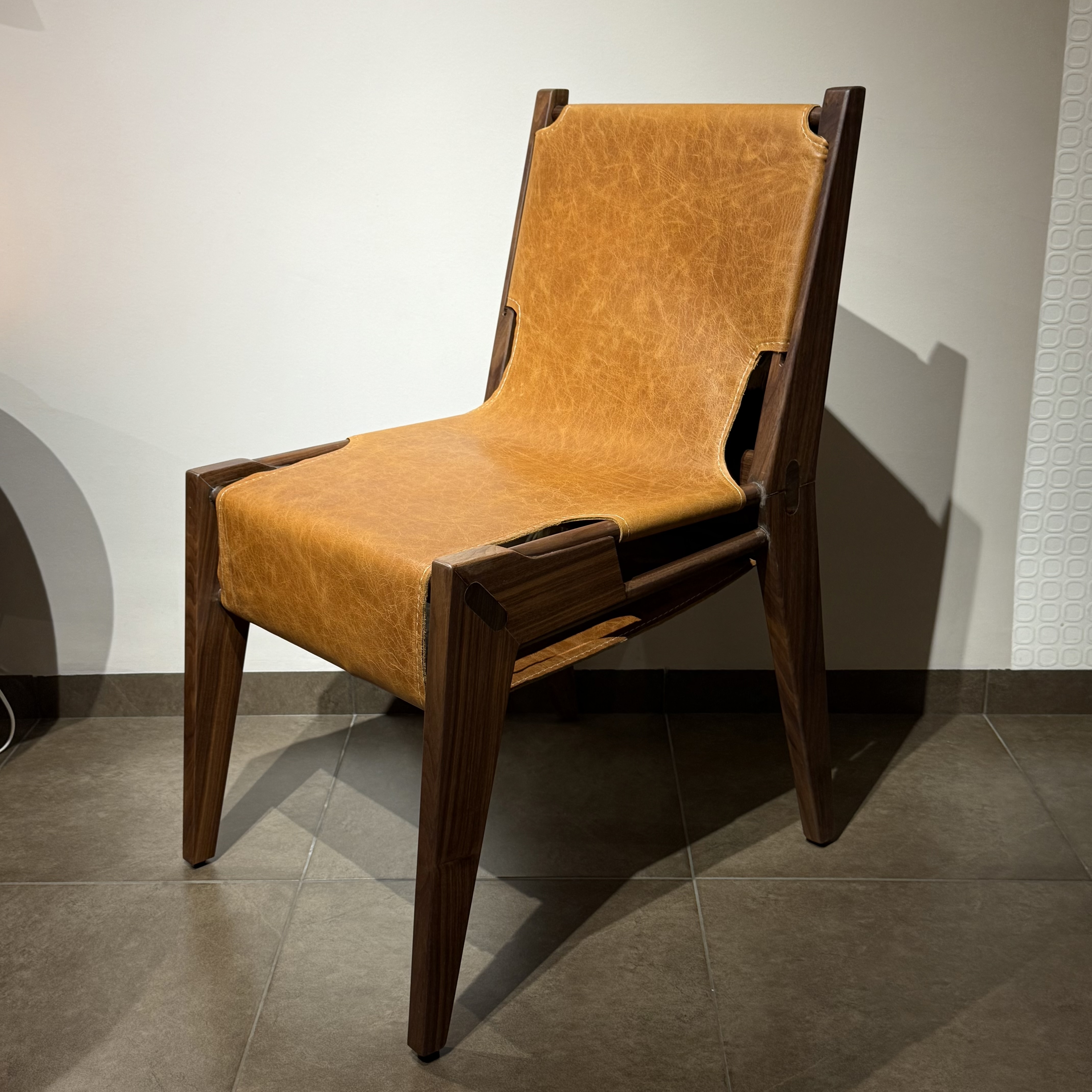 The Leatherwood Chair is a bold fusion of tradition and modernity, crafted from premium American walnut and upholstered with the finest Tuscan cowhide leather. This chair embodies strength and precision, featuring intricate Japanese joinery that locks each geometric component seamlessly, ensuring durability without the need for screws or nails.