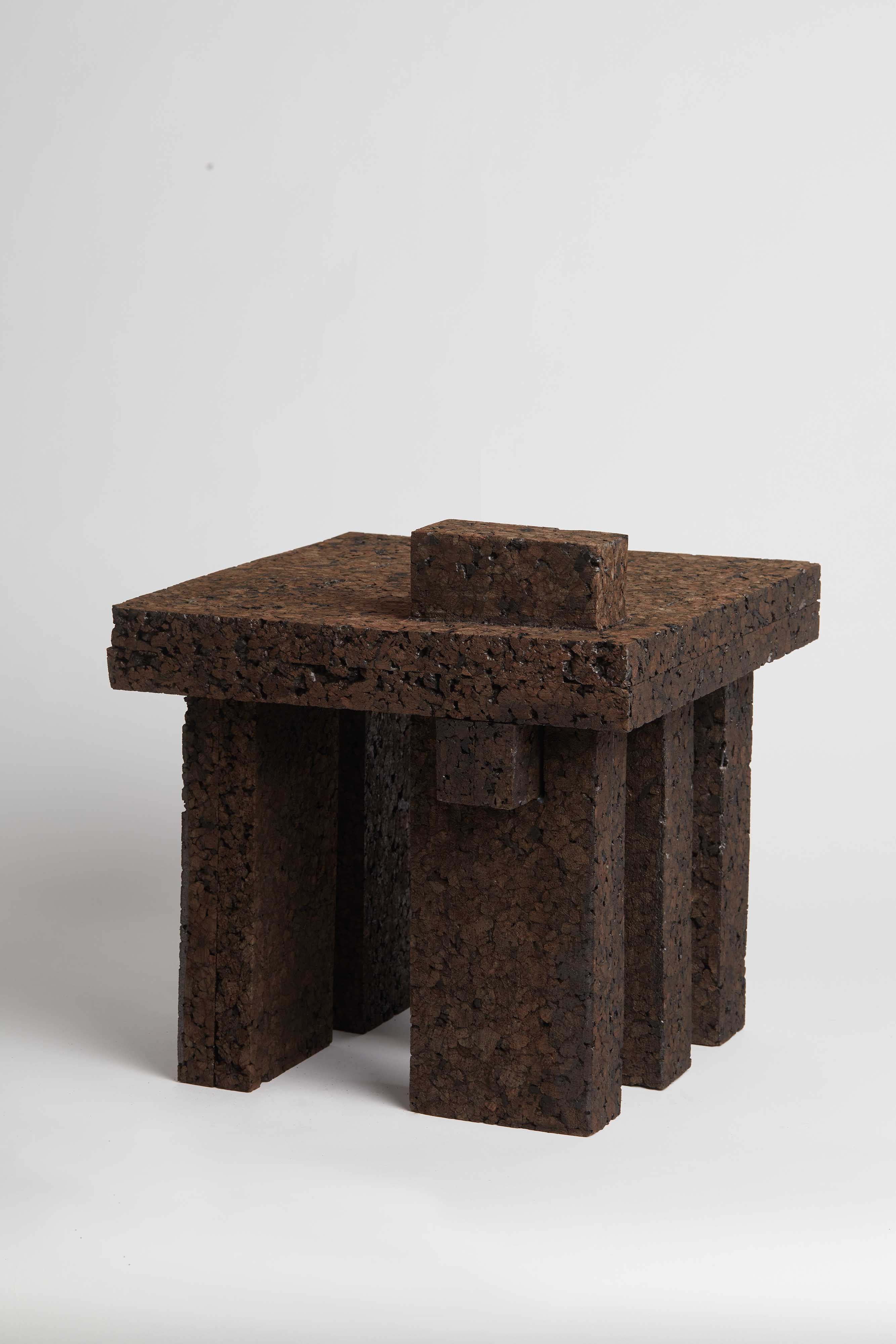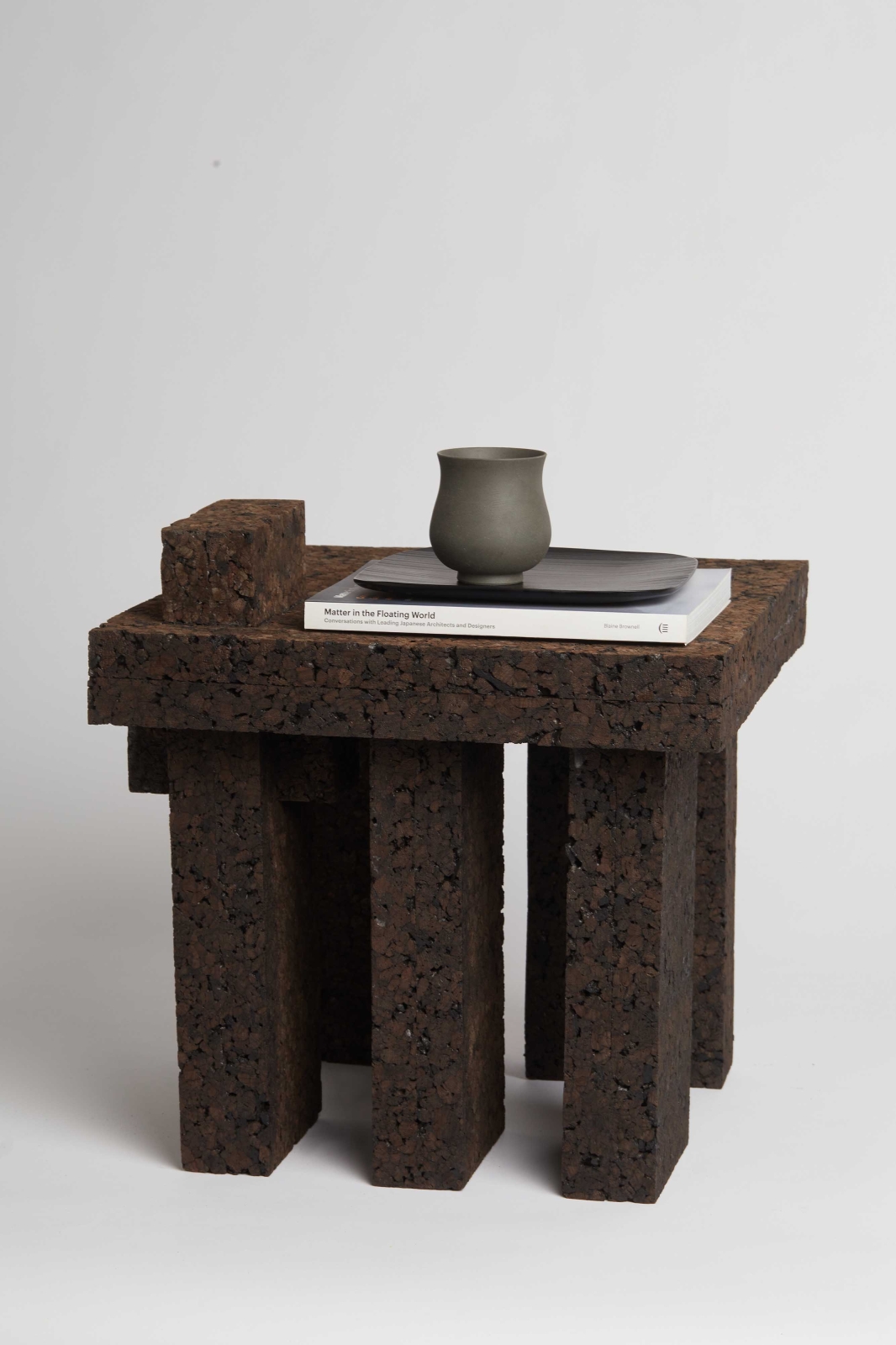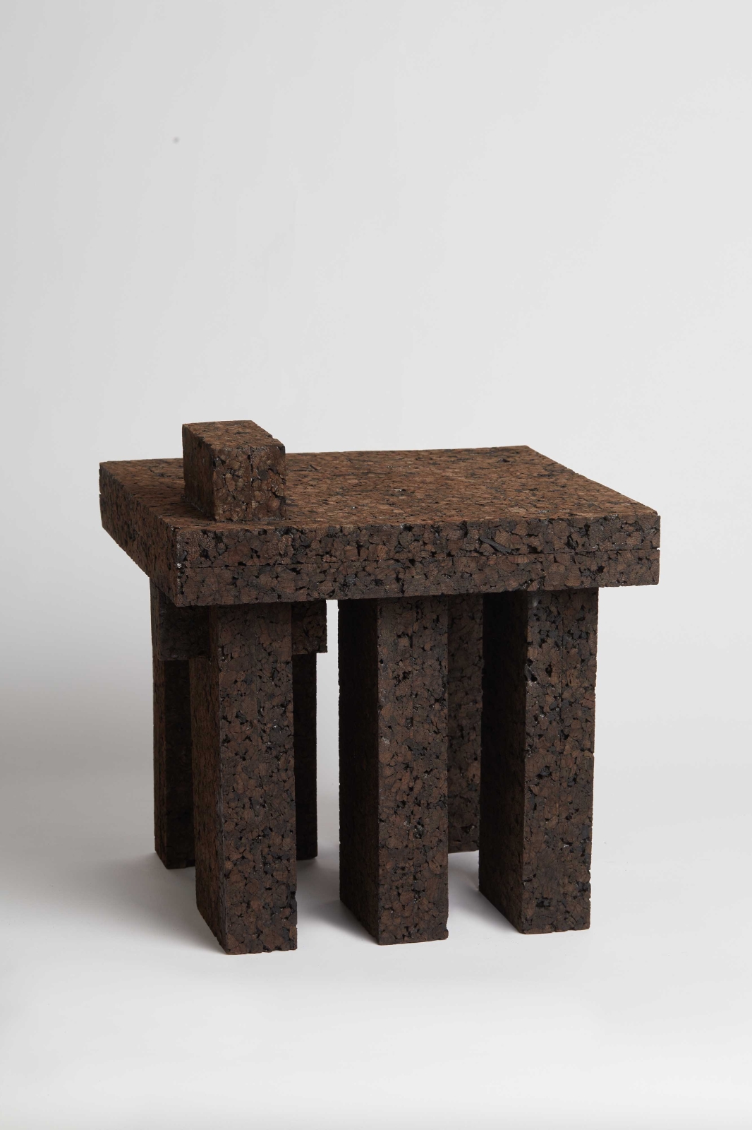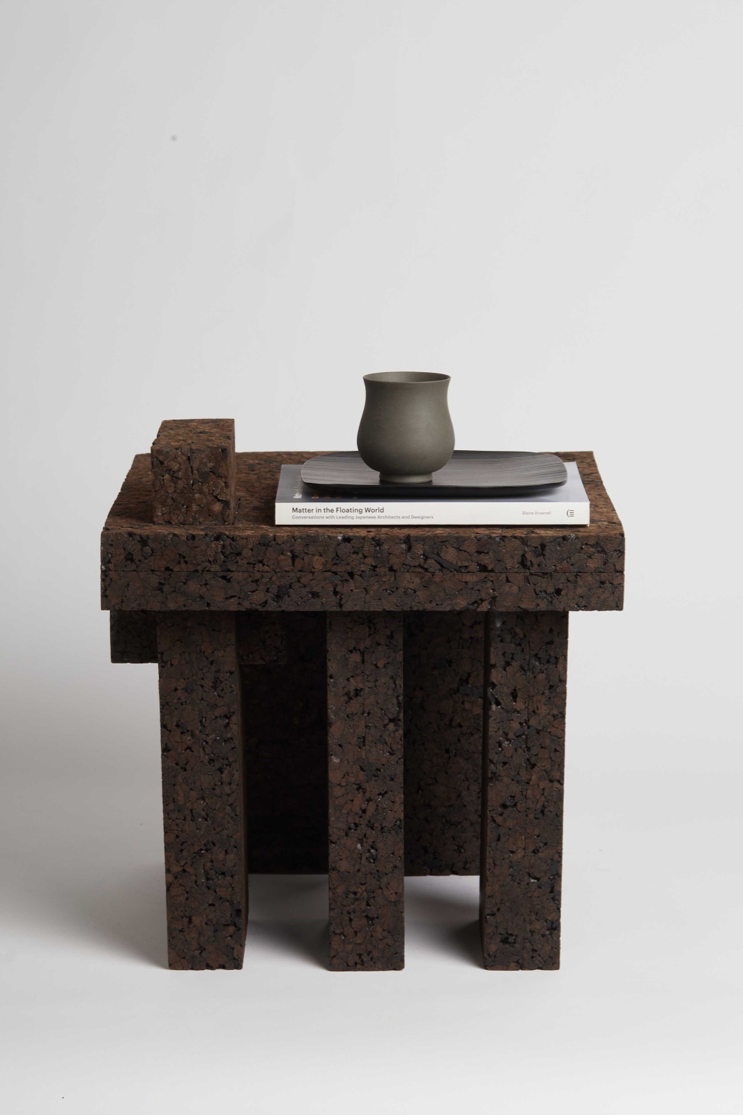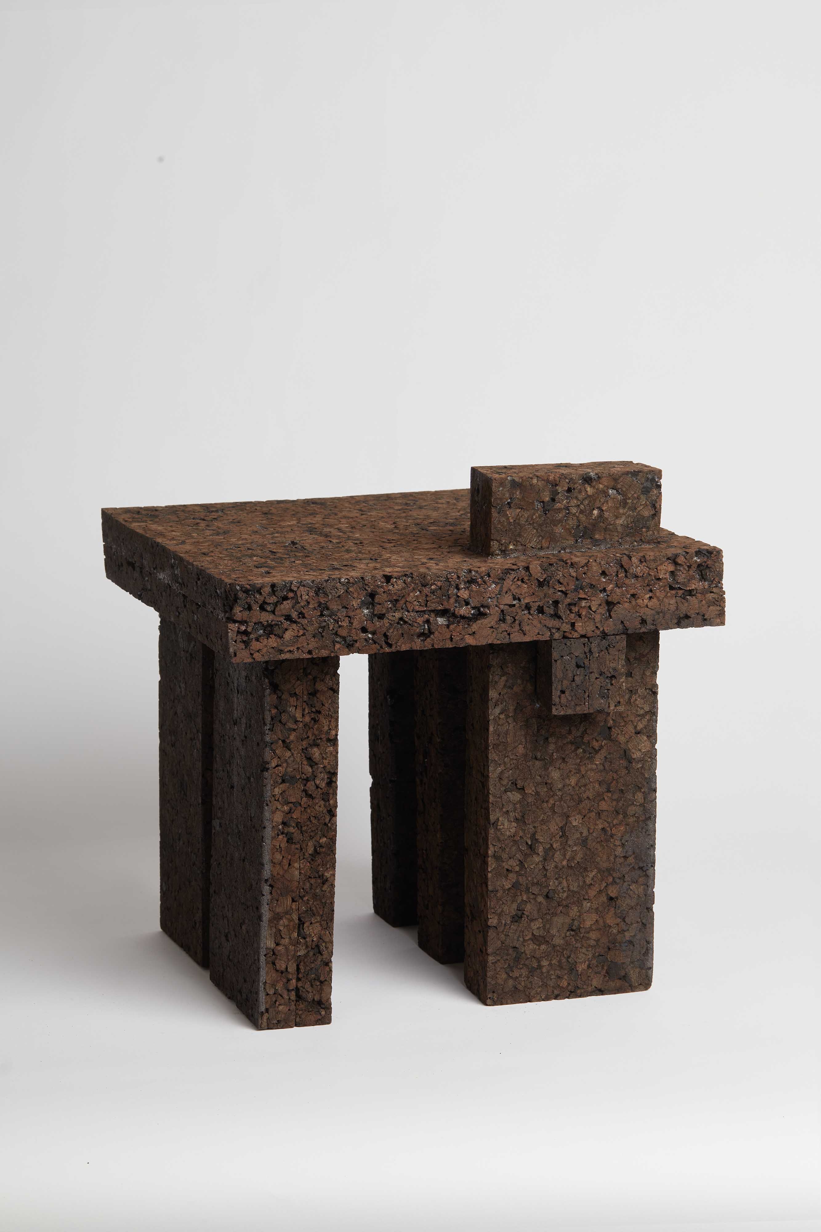 Drawing inspiration from brutalist architecture, the Cork Side Table / Stool 150 embraces bold geometry and dynamic form. With asymmetrical leg placements, each table reveals shifting perspectives, transforming its presence from every angle. A sculptural statement that merges functionality with artistic expression.