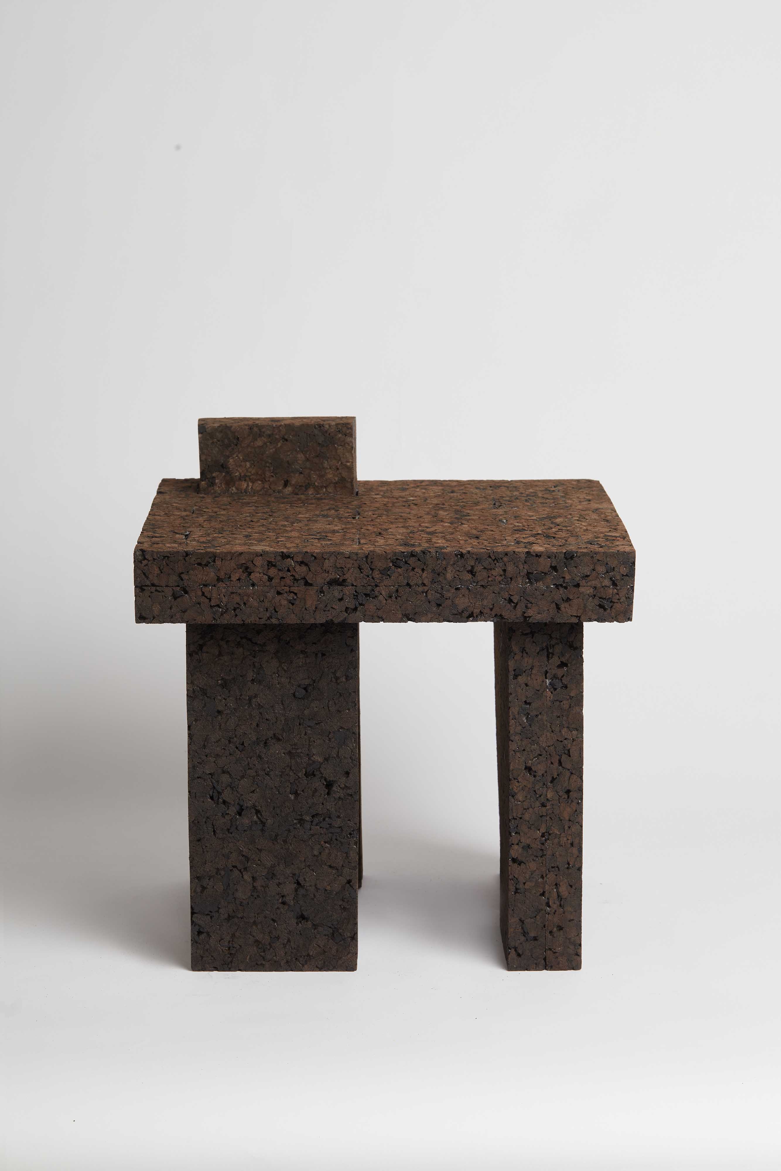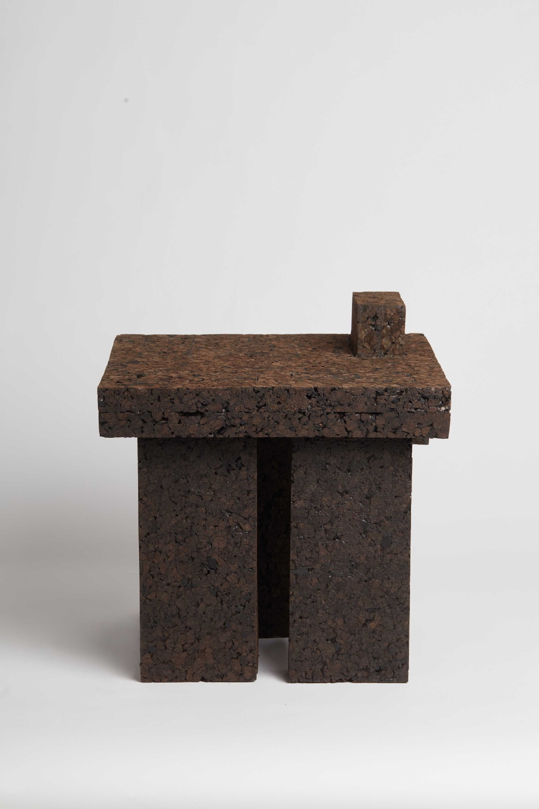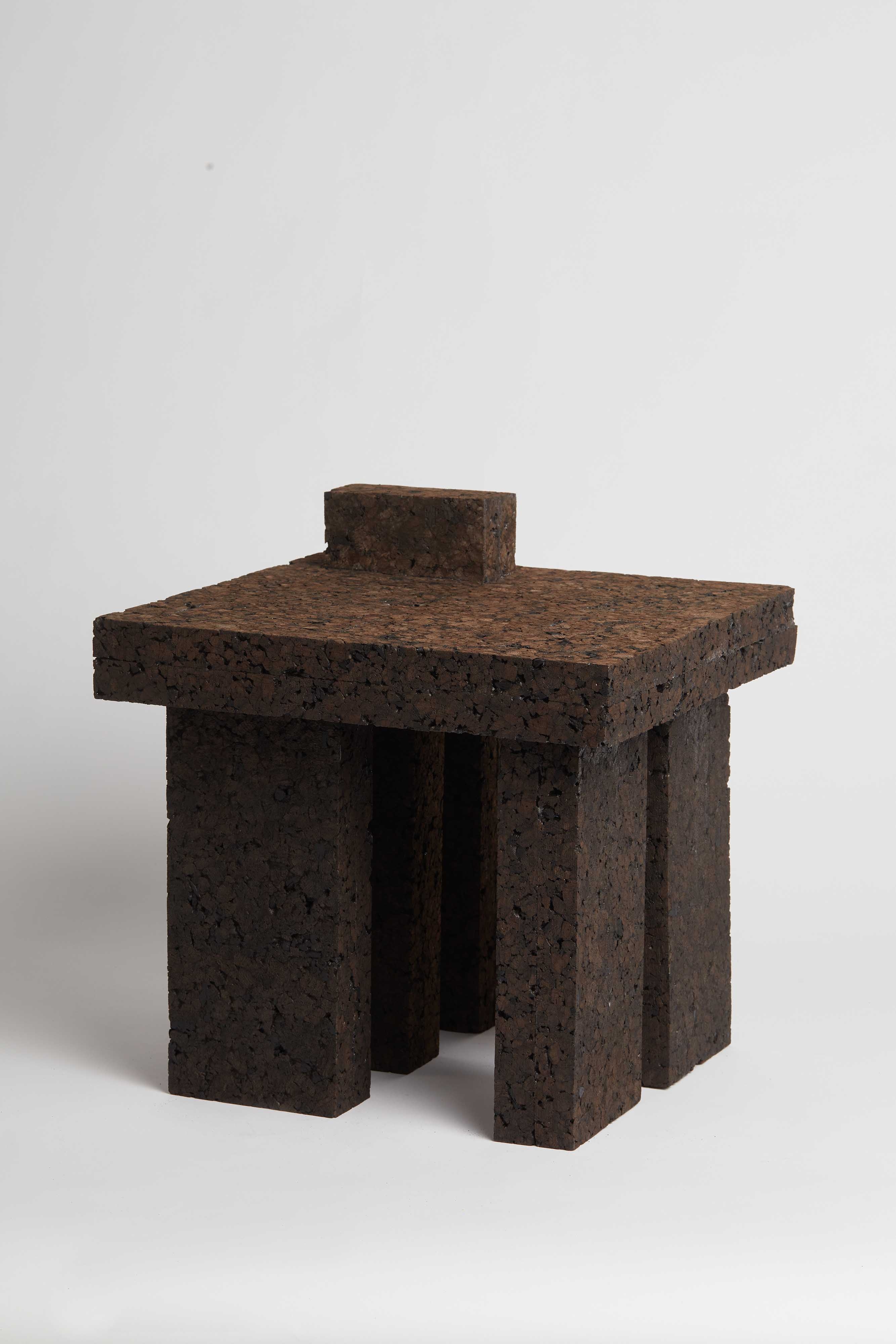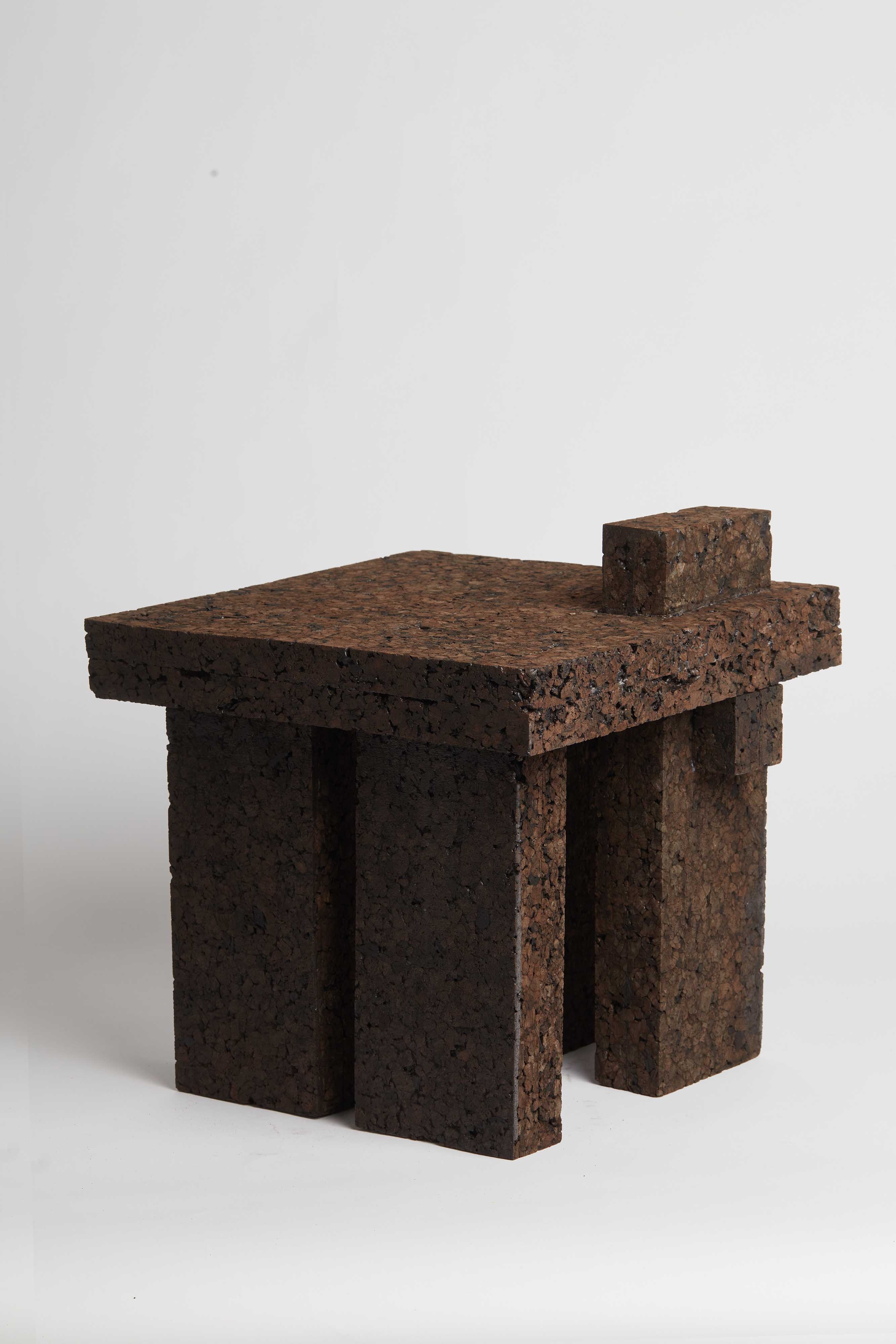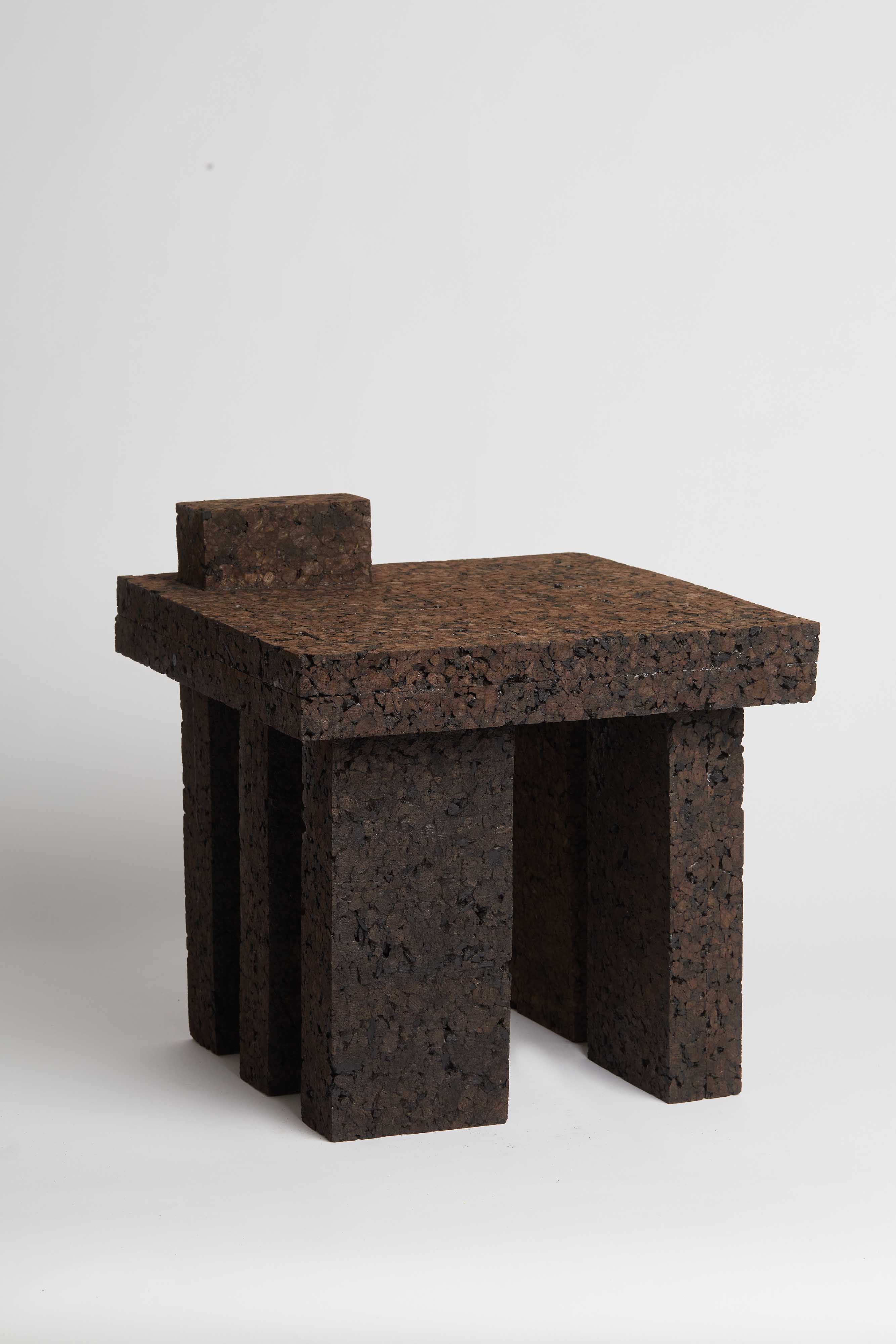 Drawing inspiration from brutalist architecture, the Cork Side Table / Stool 150 embraces bold geometry and dynamic form. With asymmetrical leg placements, each table reveals shifting perspectives, transforming its presence from every angle. A sculptural statement that merges functionality with artistic expression.