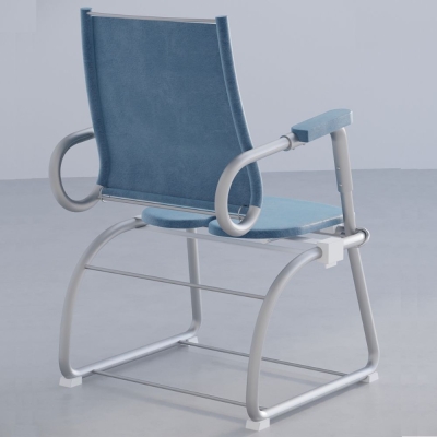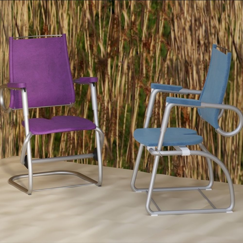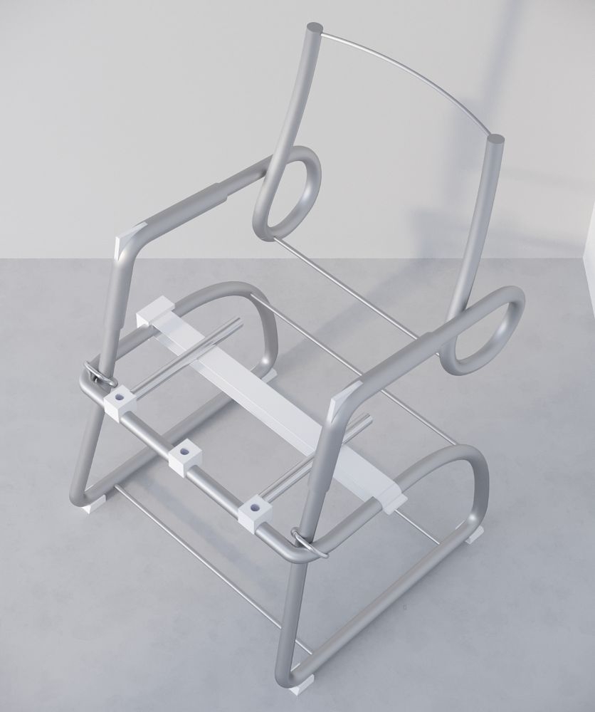 The construction is from ALU pipes, but it can be any kind of durable, not heavier polymeres, metal, or carbon etc. The frame on the ground is curved with a big radius, the armrests are compact and with adjustable position and height.