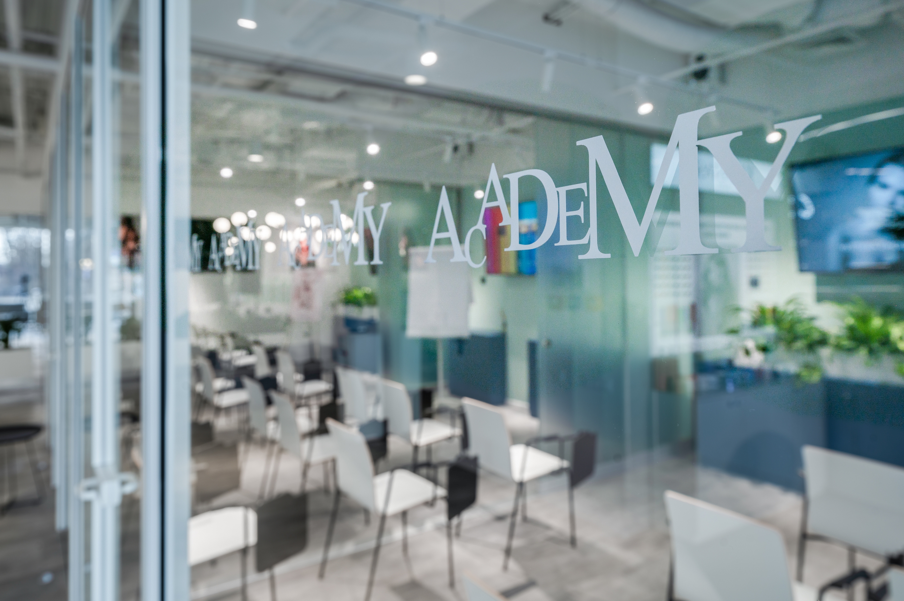 Many functional areas have been thought out in Academy: a mini-photo studio, a meeting-room for video conferences, 3 smart lecture halls, work areas for masters, a color bar area, a lounge area and much more.